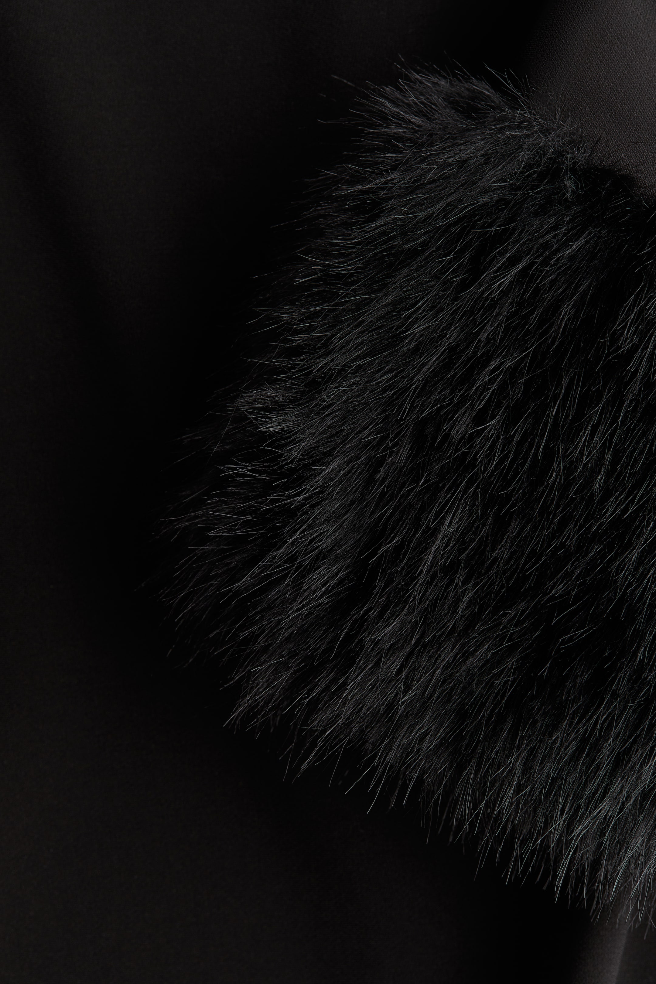 Abito corto e aderente in tessuto con scollo rotondo. Cerniera nascosta dietro, maniche lunghe con polsini in tessuto peloso. Sfoderato.