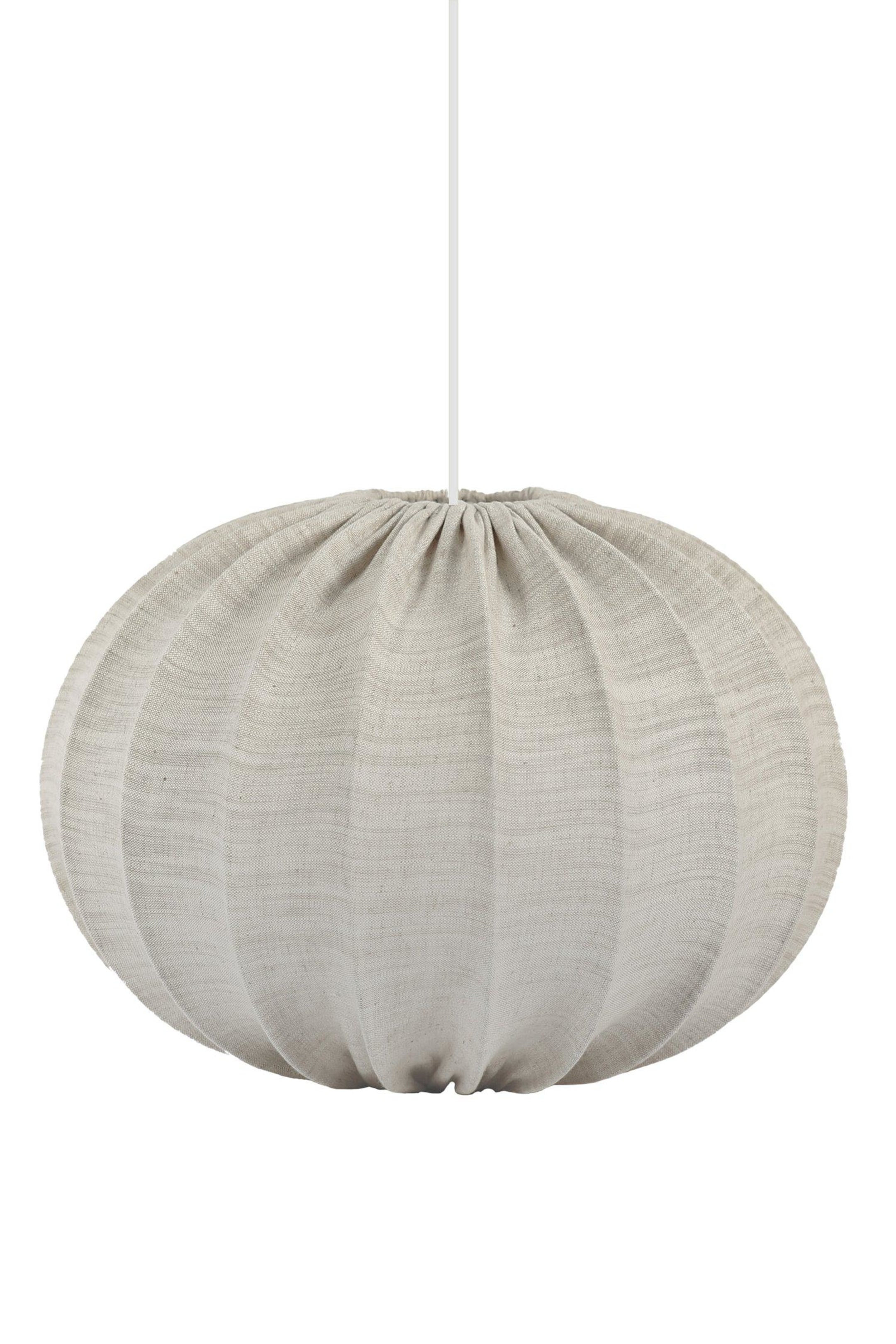 Il lampadario Hilma è rivestito in tessuto con aspetto lino. Il diametro del paralume è di 50cm e l'altezza è di 36cm. È incluso un cavo di plastica bianca con porta lampadina E27. La lunghezza del cavo è di 1,2m. Non sono inclusi la spina da soffitto e la lampadina.