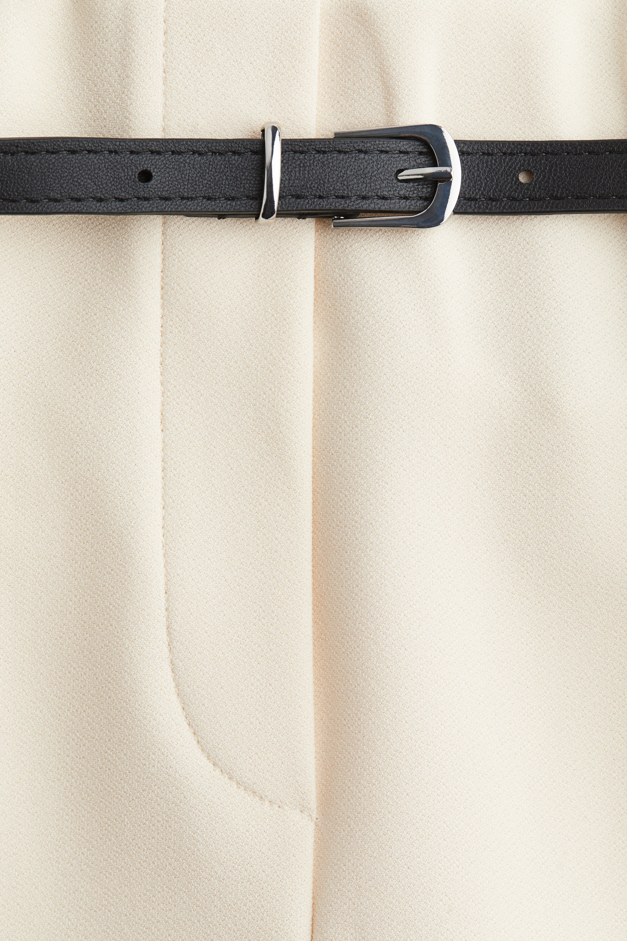 Pantaloni alla caviglia in pesante jersey. Vita alta con elastico nascosto e cintura sottile con fibbia metallica. Finta patta, piega stirata davanti e dietro.