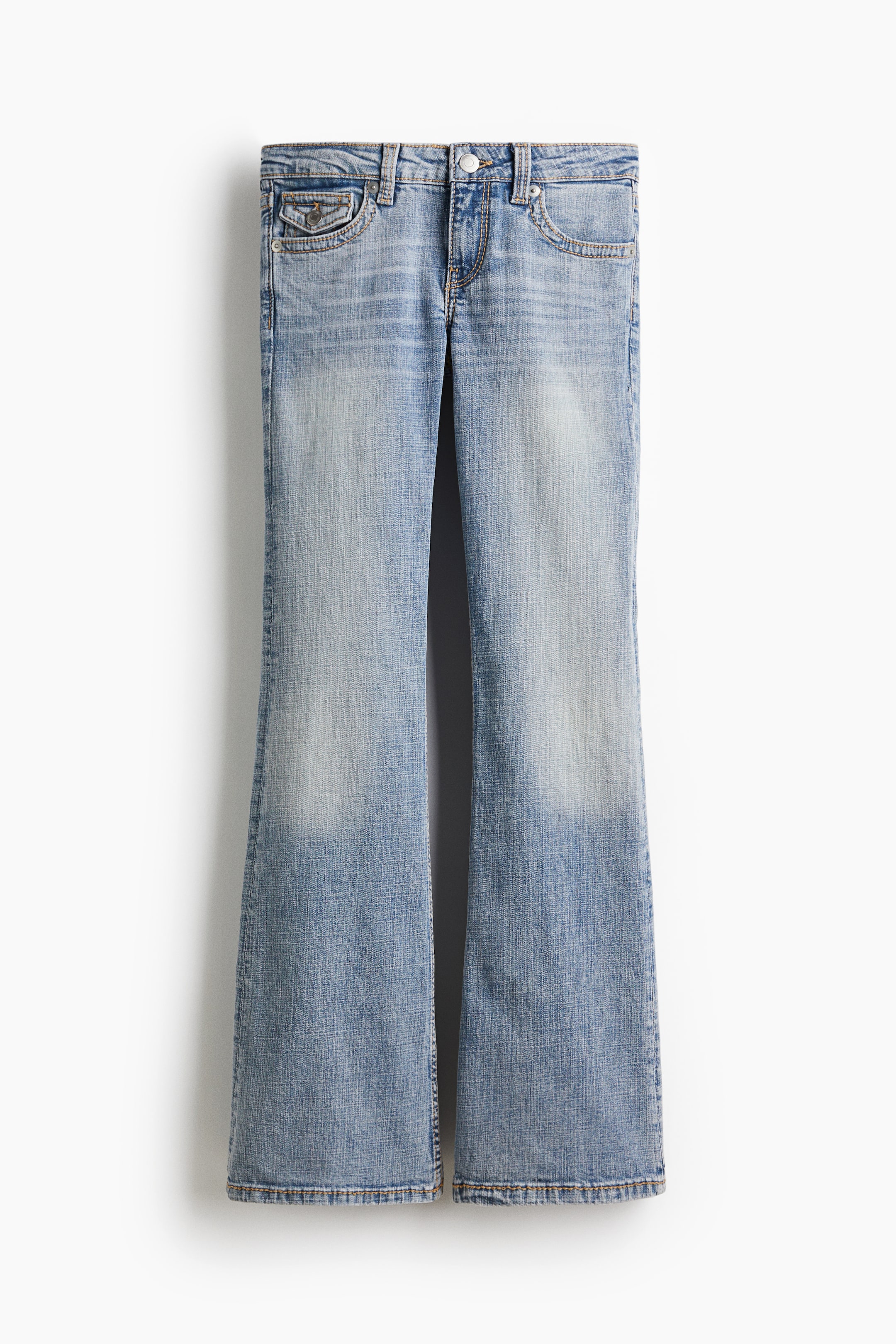 Jeans in denim leggermente elasticizzato per il massimo comfort. Gamba svasata con linea aderente su vita e cosce che si allarga dal ginocchio verso il basso. Vita bassa, patta con cerniera e bottone. Tasche anteriori aperte, tasche posteriori con pattina e bottone. Modello più lungo, con il tessuto che ricade morbidamente sul piede. Abbinali secondo il tuo gusto, con un paio di sneakers o stivaletti alla caviglia.