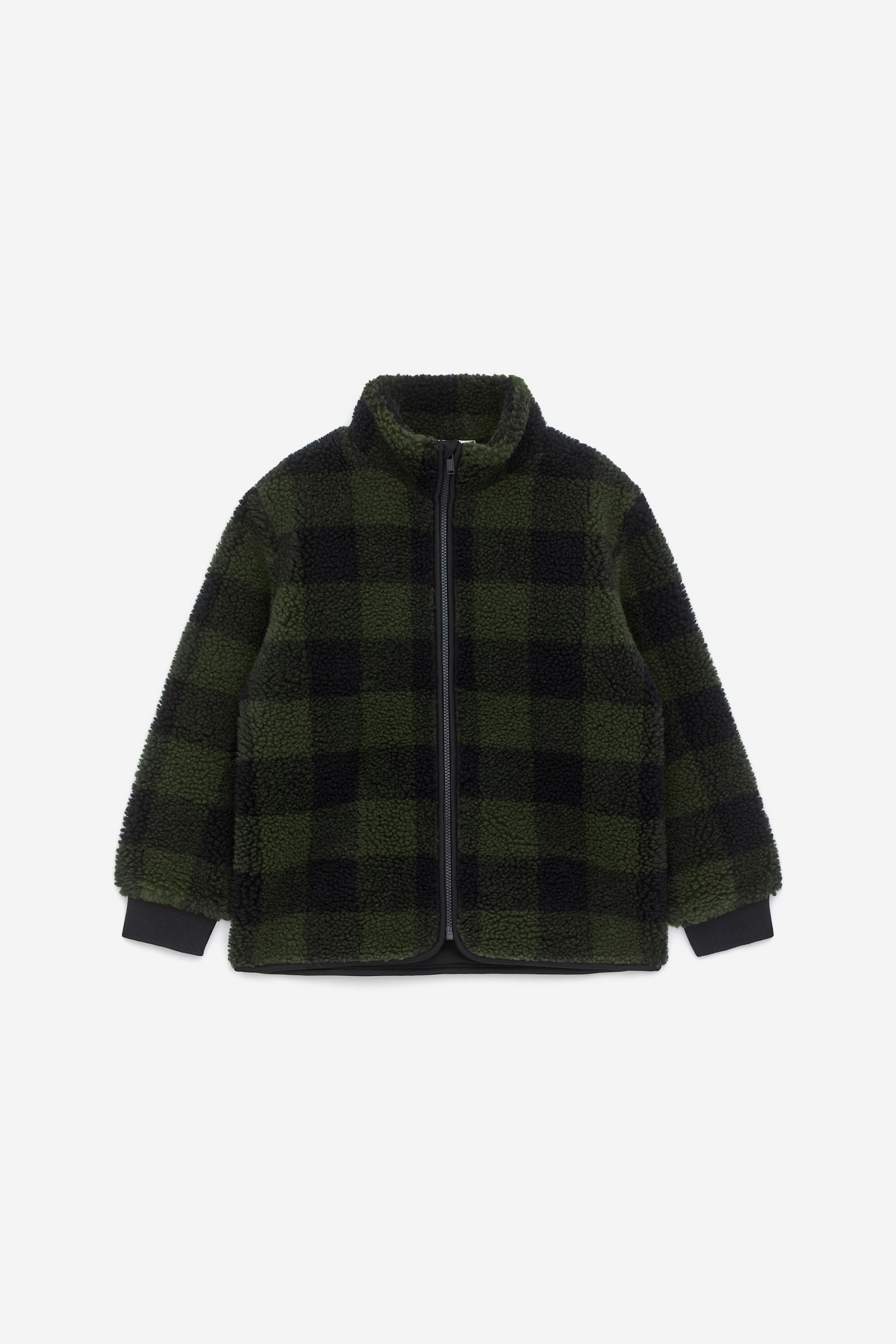 Giacca in pile con collo alto, chiusura con cerniera e polsini. Vestibilità rilassata.