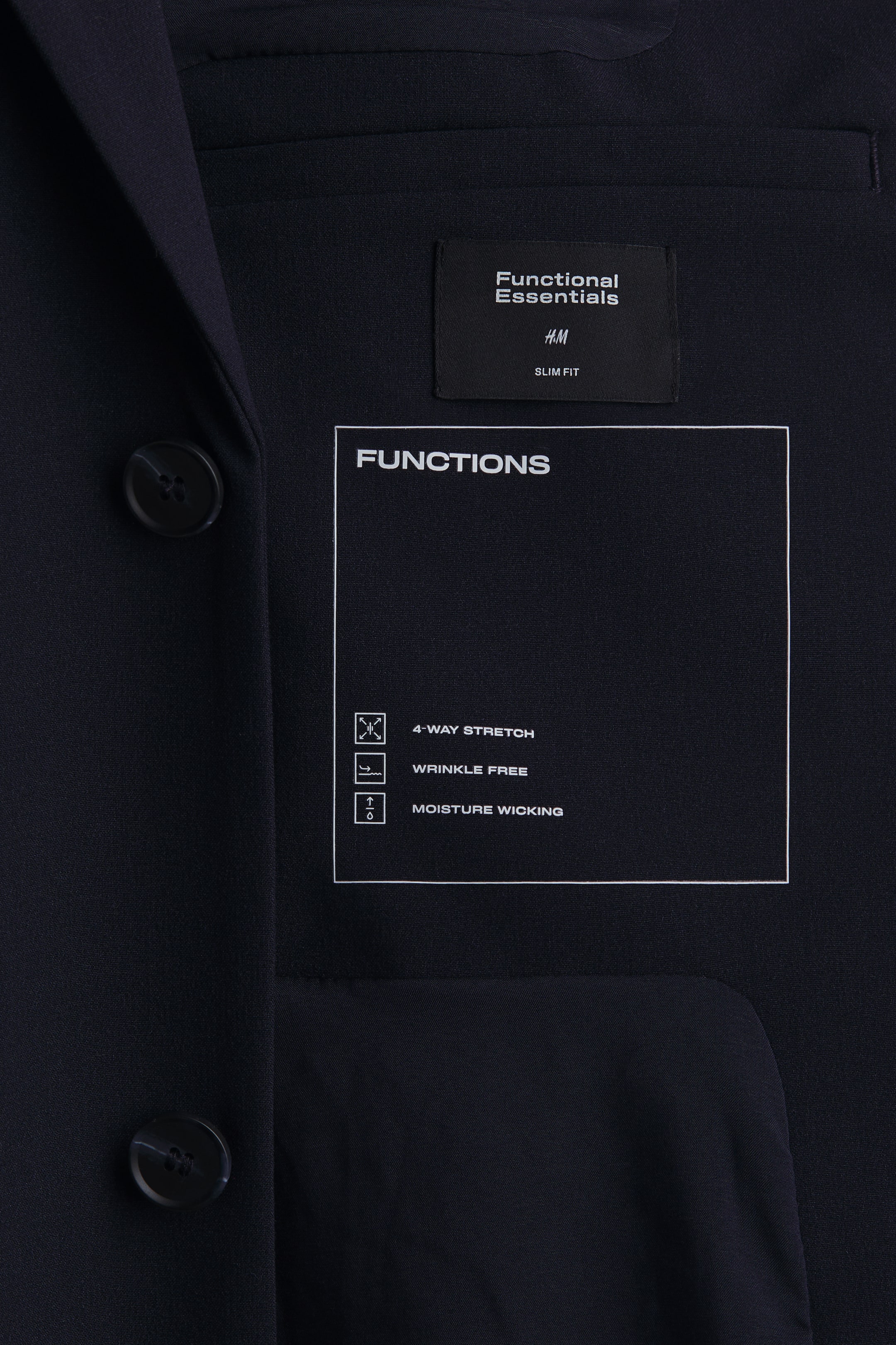 Giacca da completo aderente in tessuto traspirante quadrielastico e modellante che non si stropiccia facilmente e che offre la massima flessibilità e libertà di movimento. Ideale per i viaggi o gli spostamenti quotidiani. Revers classici con asola decorativa, bottoni davanti. Taschino obliquo sul petto, tasche con pattina davanti e tasca interna con cerniera. Polsini con bottone e doppio spacco dietro. Parzialmente foderata. Function Essentials è una collezione selezionata di capi che uniscono comfort e prestazioni nell'abbigliamento di tutti i giorni.