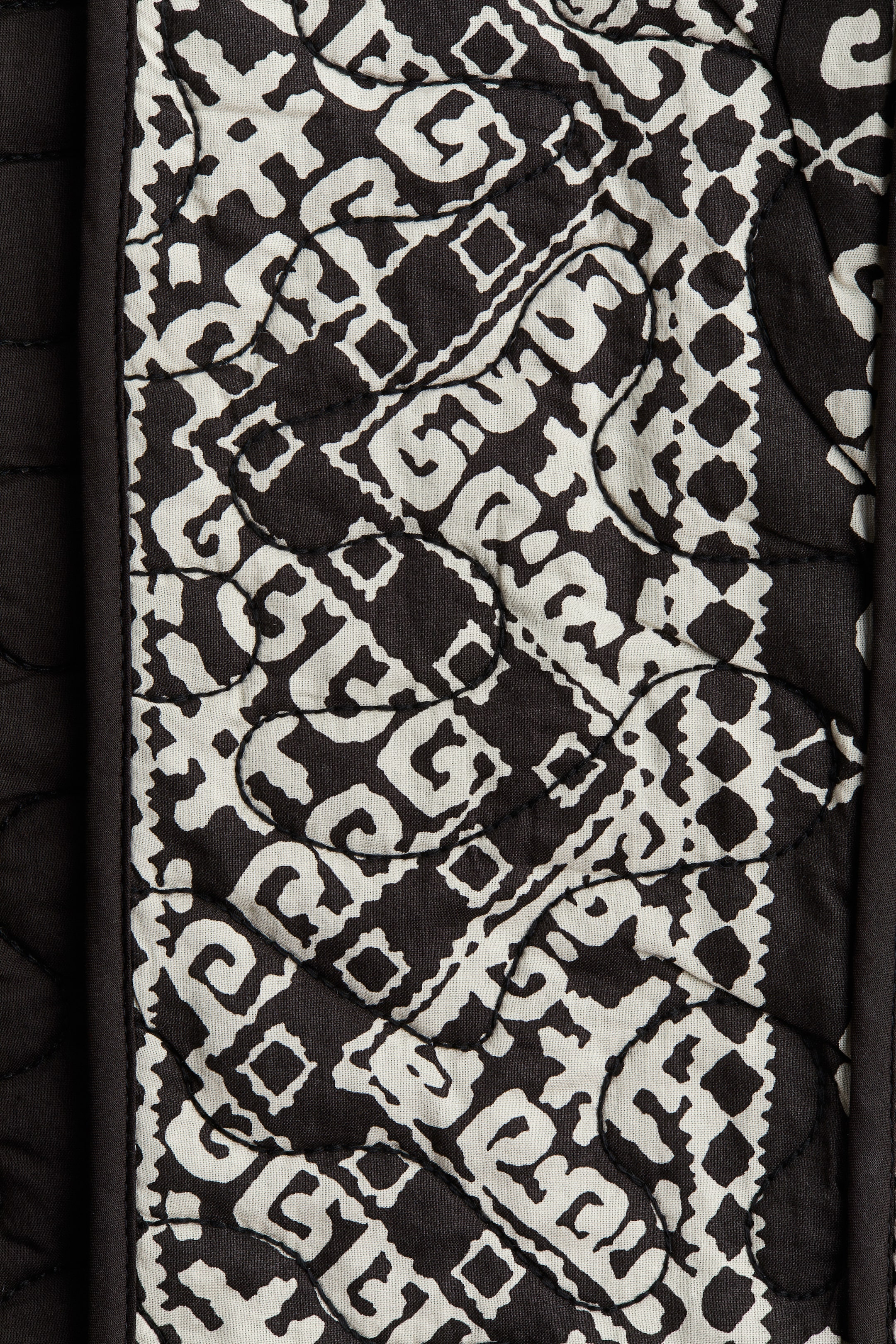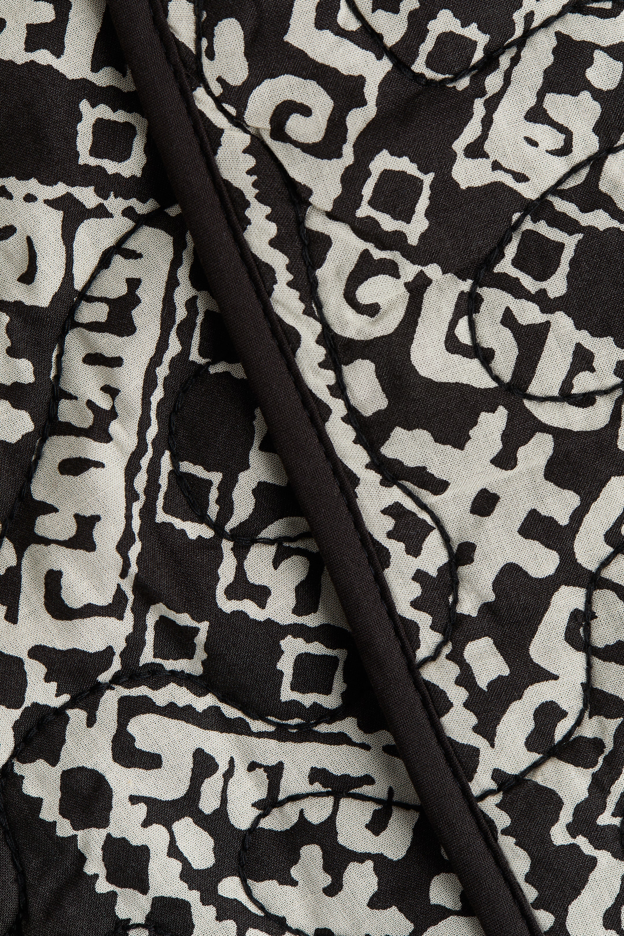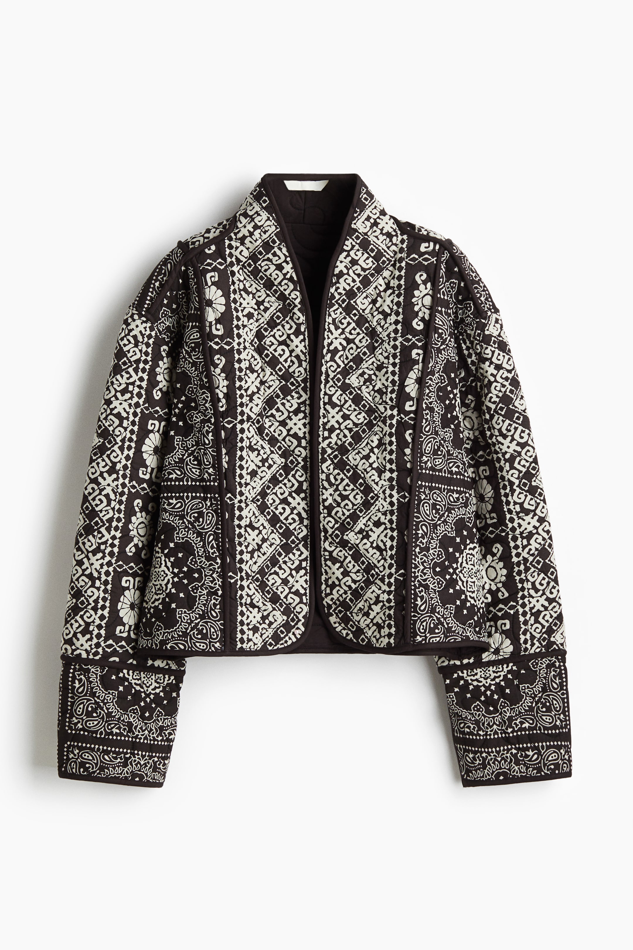 Giacca leggermente imbottita in tessuto di cotone trapuntato con profilo in fettuccia lungo tutti i bordi. Colletto alto e aperto, senza allacciatura. Foderata.