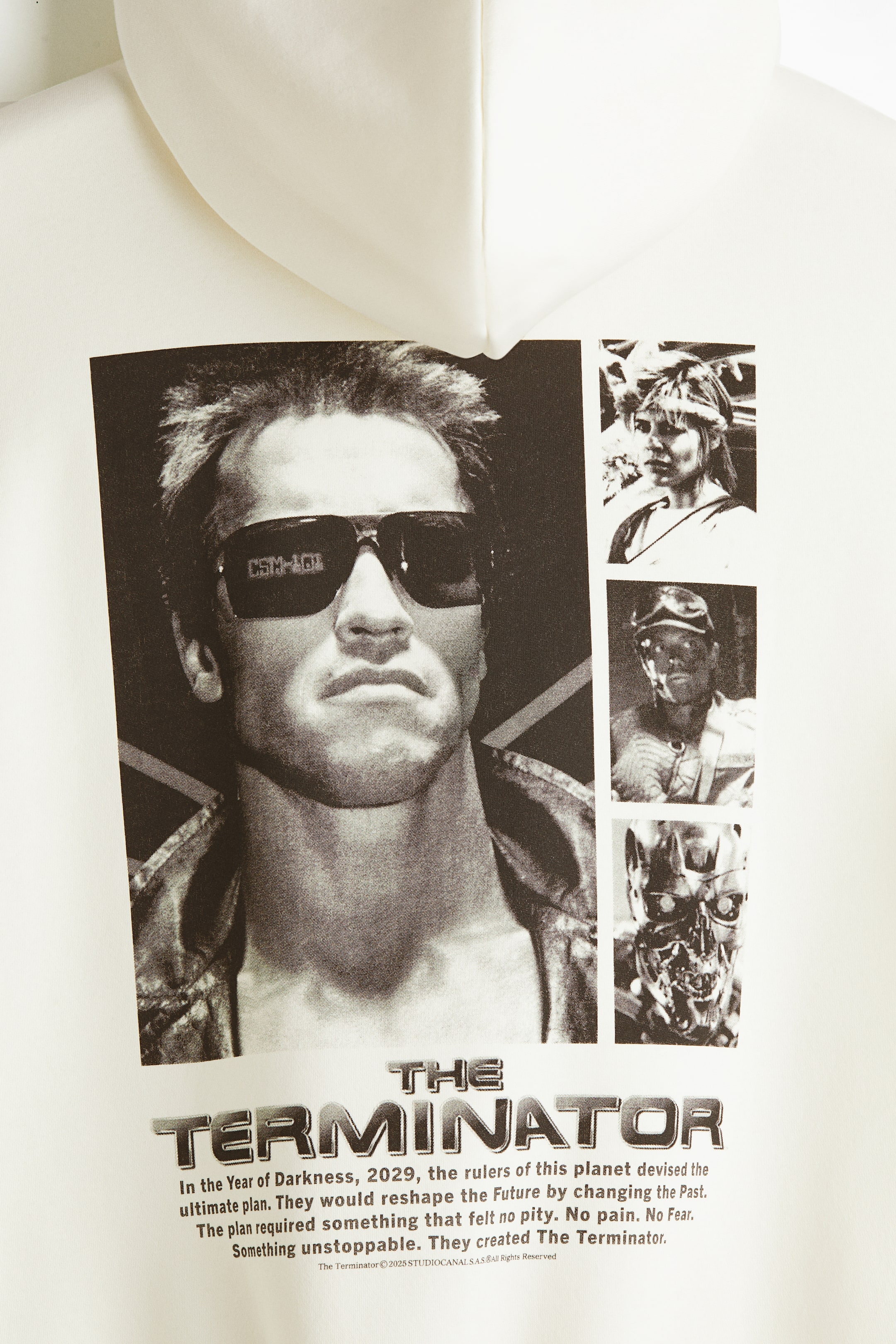 Maglia in tessuto felpato con cappuccio e stampa. Morbido interno spazzolato. Cappuccio foderato e con incrocio davanti. Spalle basse, tasca a marsupio davanti. Bordo a costine a fondo manica e in basso. Linea ampia per una vestibilità comoda ma non oversize.