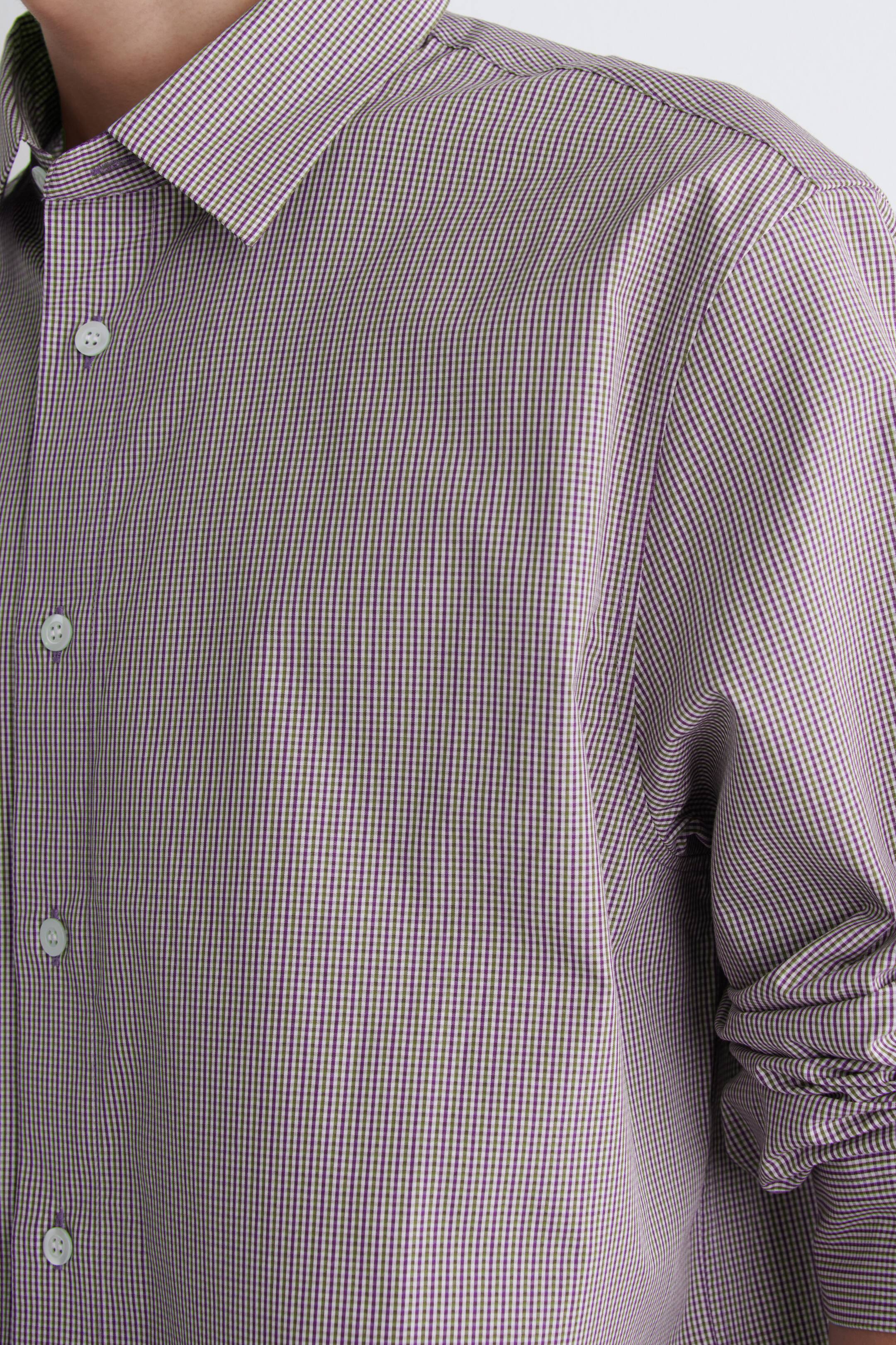Questa camicia a maniche lunghe è un capo essenziale per l'estate. Realizzata in popeline di cotone naturalmente traspirante, presenta un motivo a micro quadretti e una silhouette rilassata che non aderisce al corpo nelle giornate più calde. Vestibilità regolare Chiusura con bottoni Esterno: 100% cotone. Escluse le finiture / Lavaggio in lavatrice La lunghezza sul retro nella taglia M è di 77 cm / Il modello indossa la taglia M