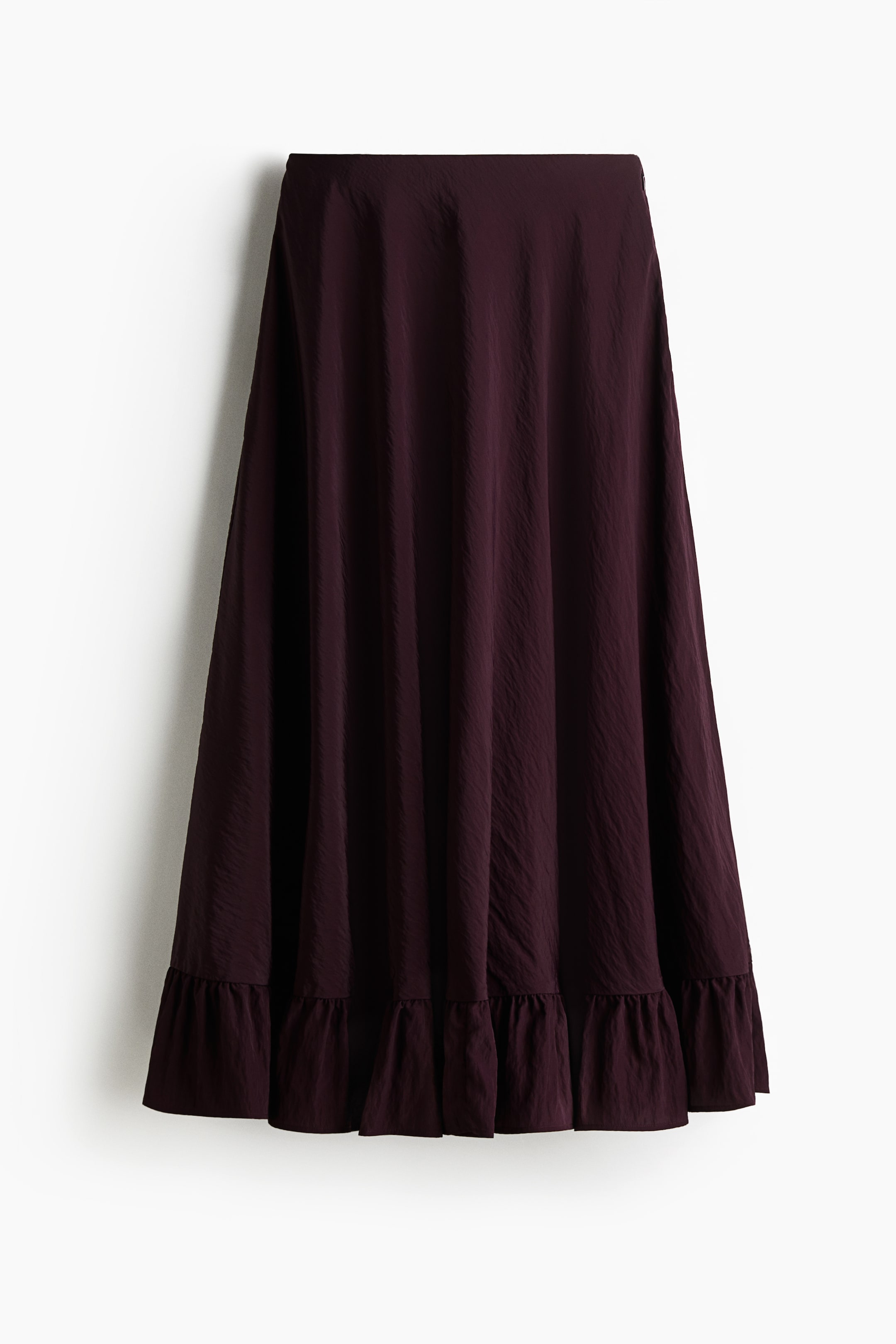 Maxigonna dalla linea ampia in tessuto. Vita alta con elastico nascosto e chiusura dietro con cerniera nascosta e gancetto. Modello svasato con bordo a volant in basso. Sfoderata.