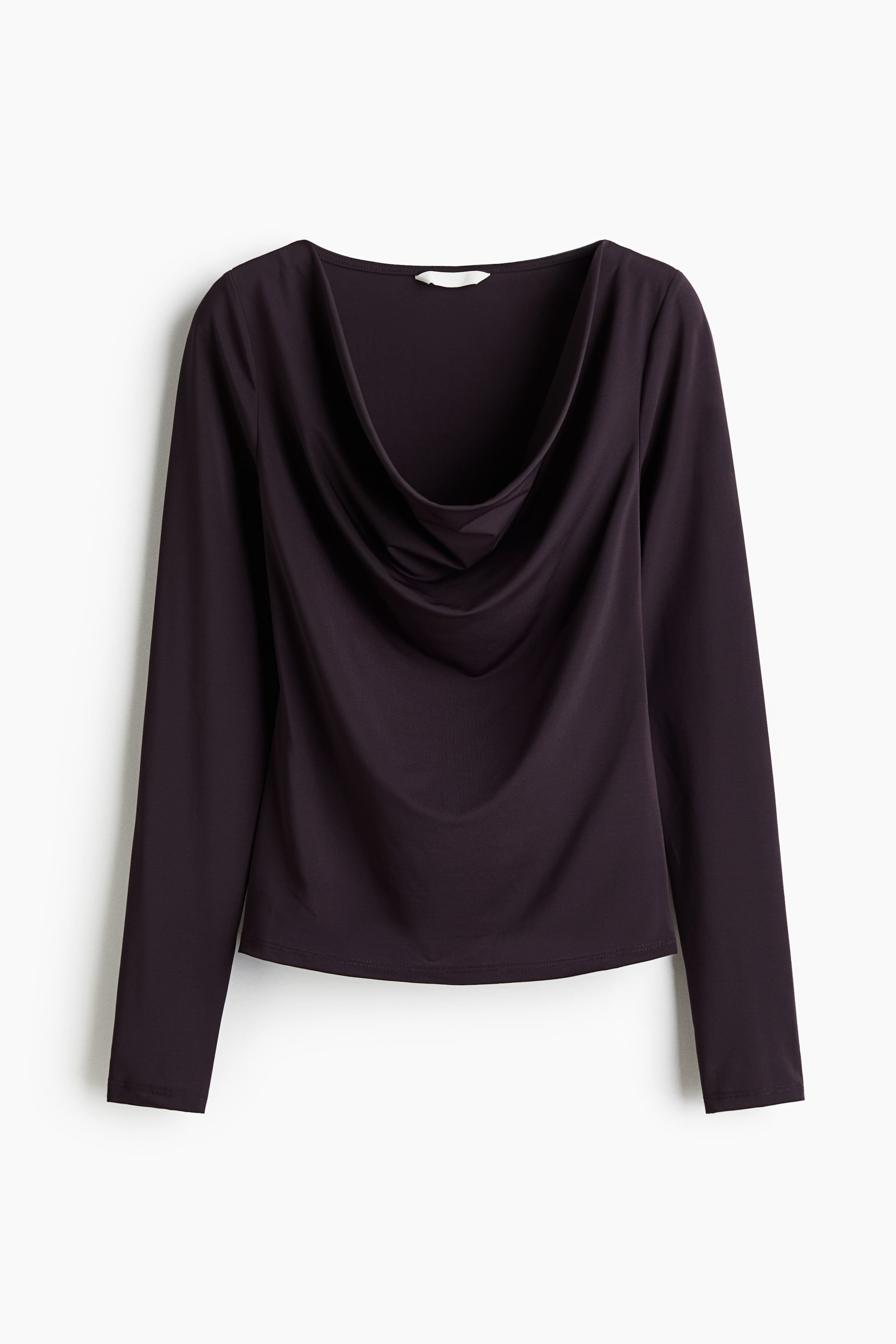 Maglia aderente in jersey elasticizzato con scollo drappeggiato e maniche lunghe.