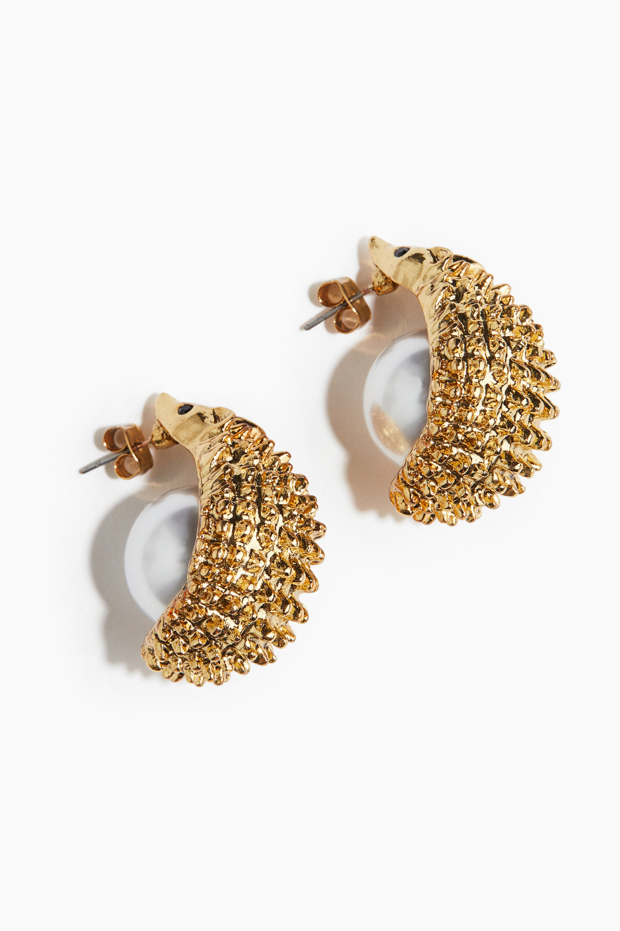 Orecchini in metallo ispirati a un riccio, impreziositi da una perlina.