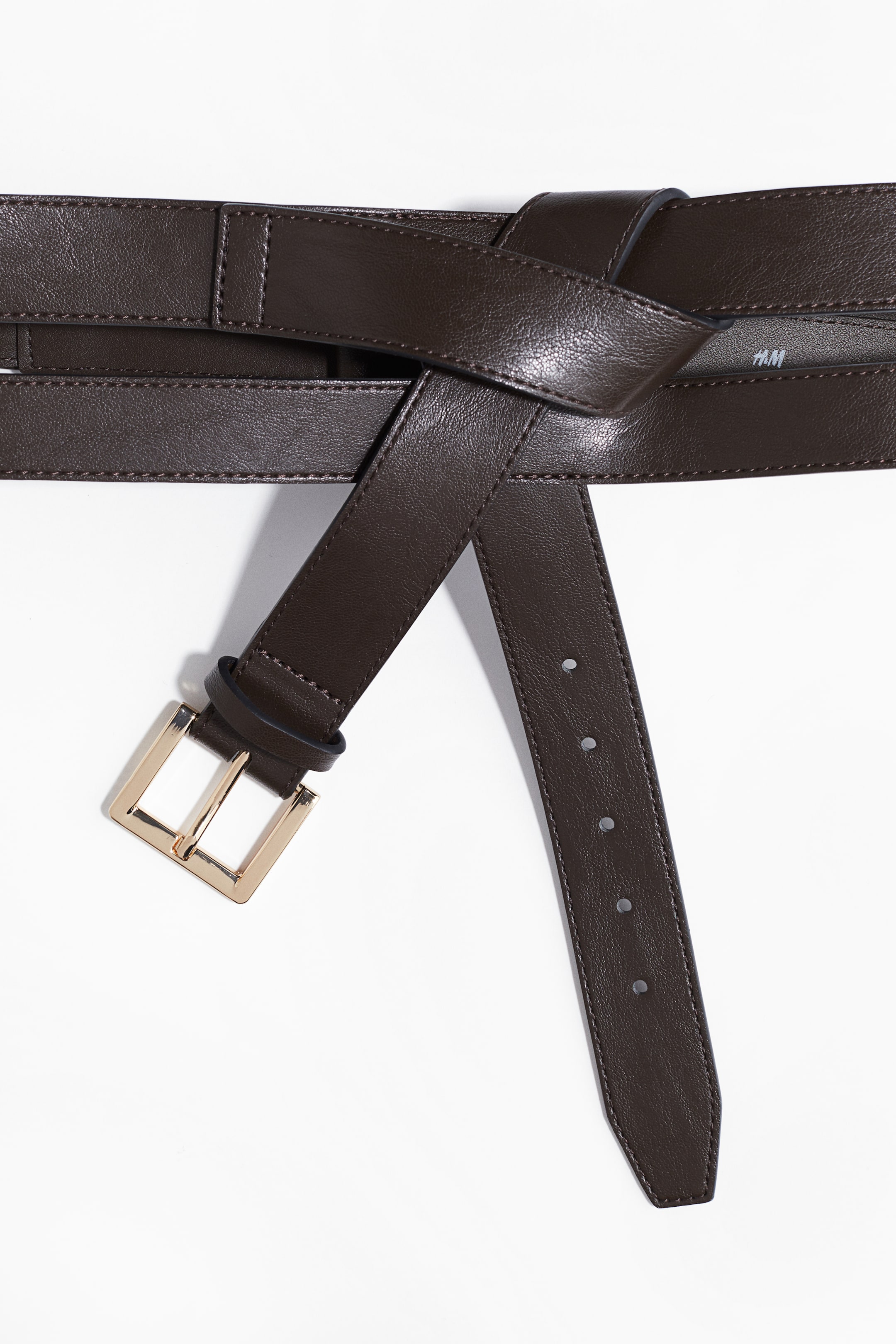 Cintura doppia con cinturini aggiuntivi e fibbia in metallo davanti che creano l'illusione che la cintura sia annodata. Chiusura regolabile dietro.