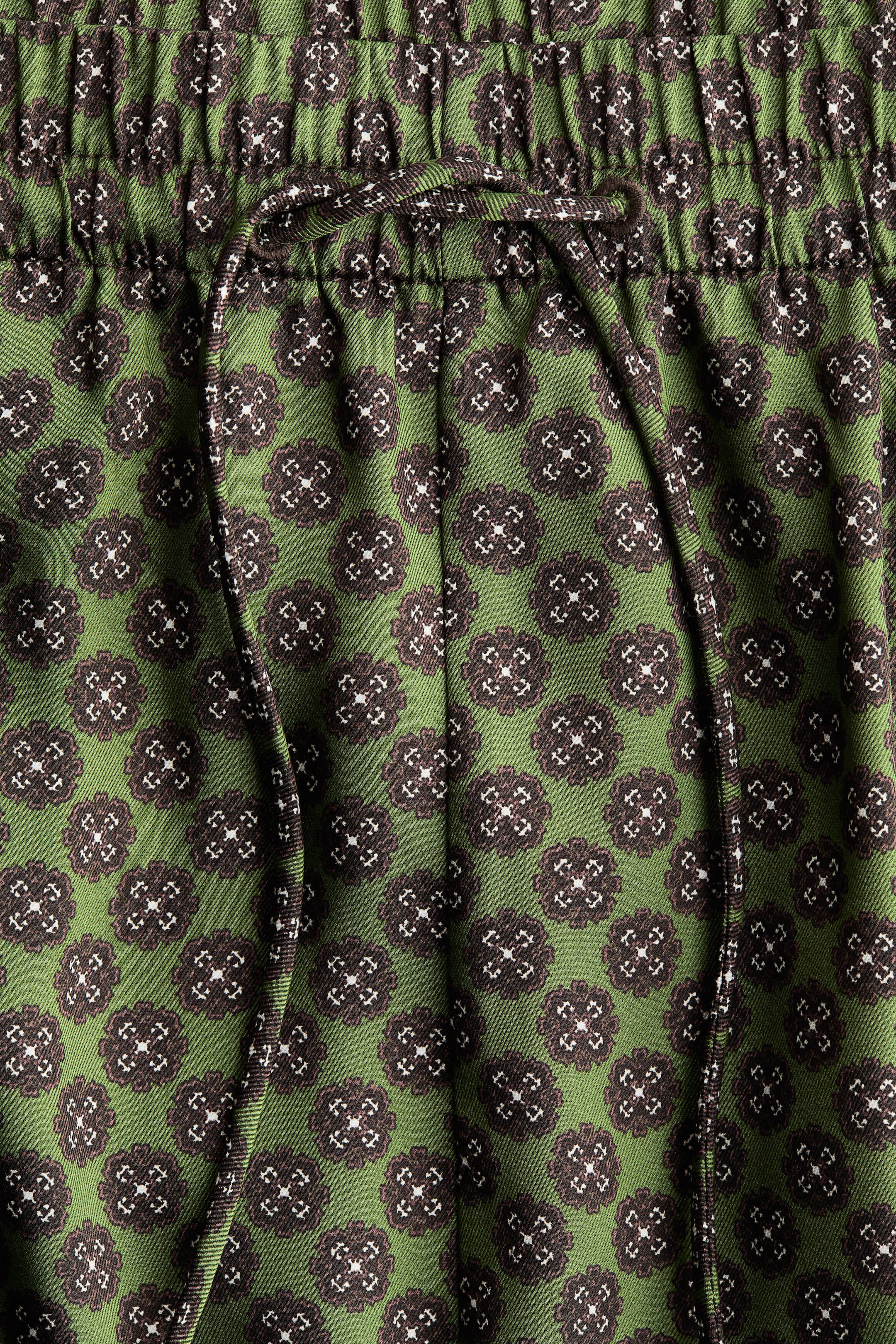 Pantaloni in twill con elastico e coulisse in vita, tasche laterali e gamba dritta.