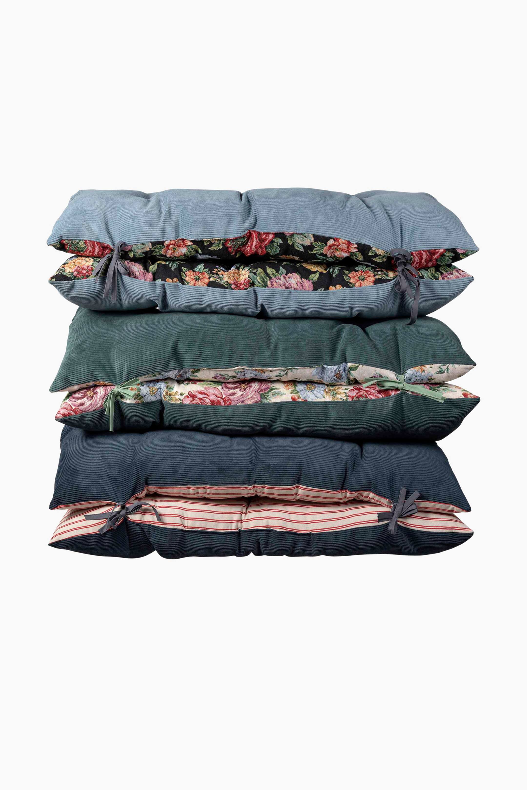 Futon versatile e multifunzionale. Reversibile. Rivestito in tessuto jacquard di cotone da un lato e in velluto a coste dall'altro. Imbottitura in fibra cava siliconata. Confezionato sottovuoto. Rivestimento non sfoderabile. Dimensioni: 120 x 100 cm.