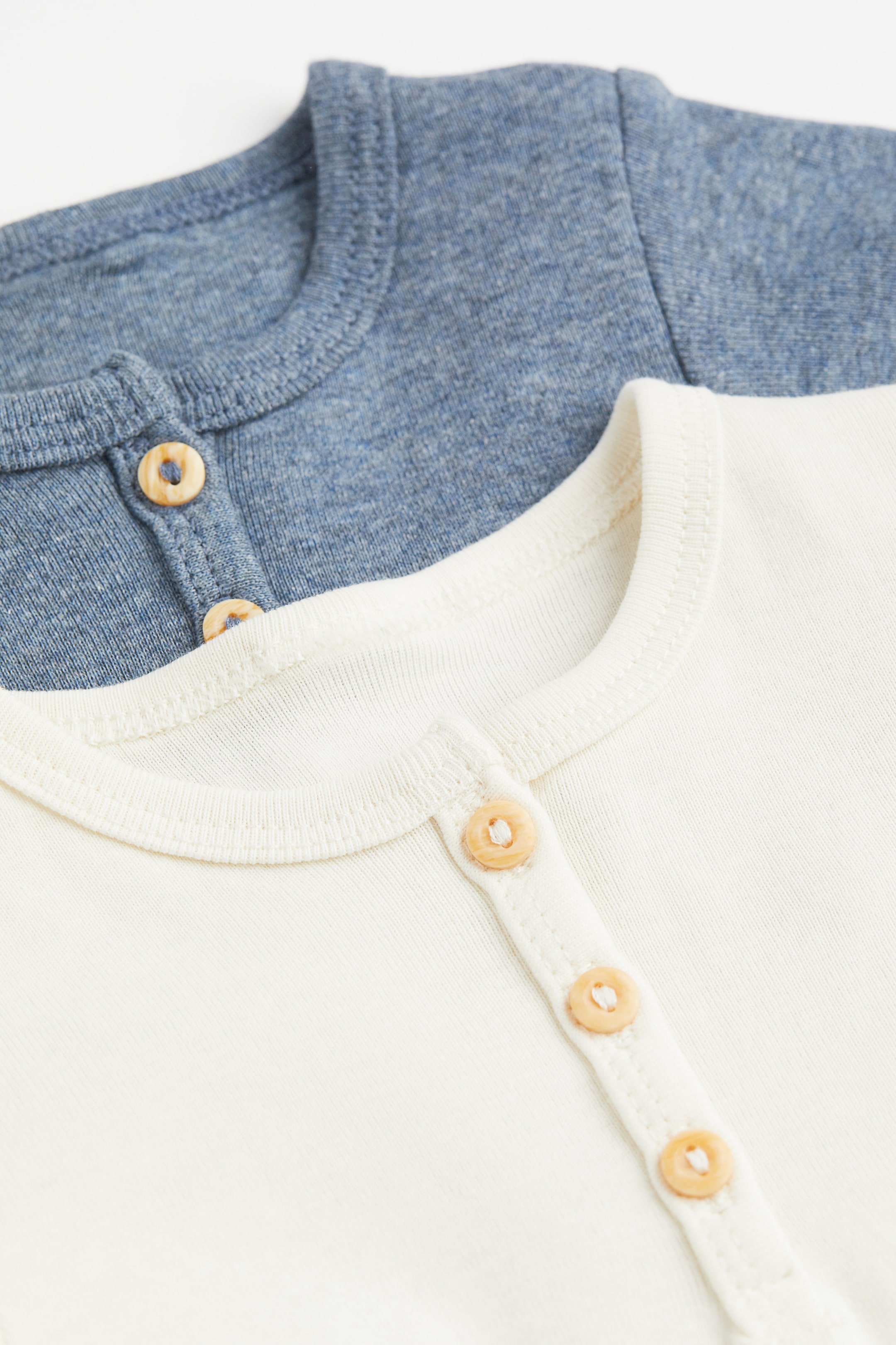 Baby Exclusive。ソフトなコットンジャージー素材のTシャツ。フロントの途中までボタン付き。半袖。