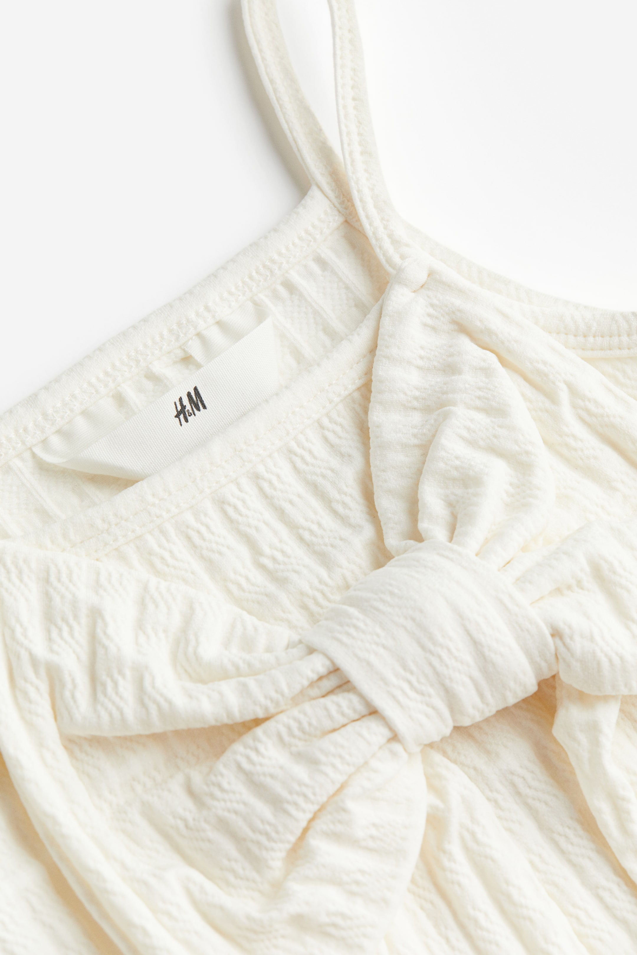 表面感のあるジャージー素材のキャミトップス。ショルダーストラップは細身。フロントに大きなリボンをあしらったデザイン。