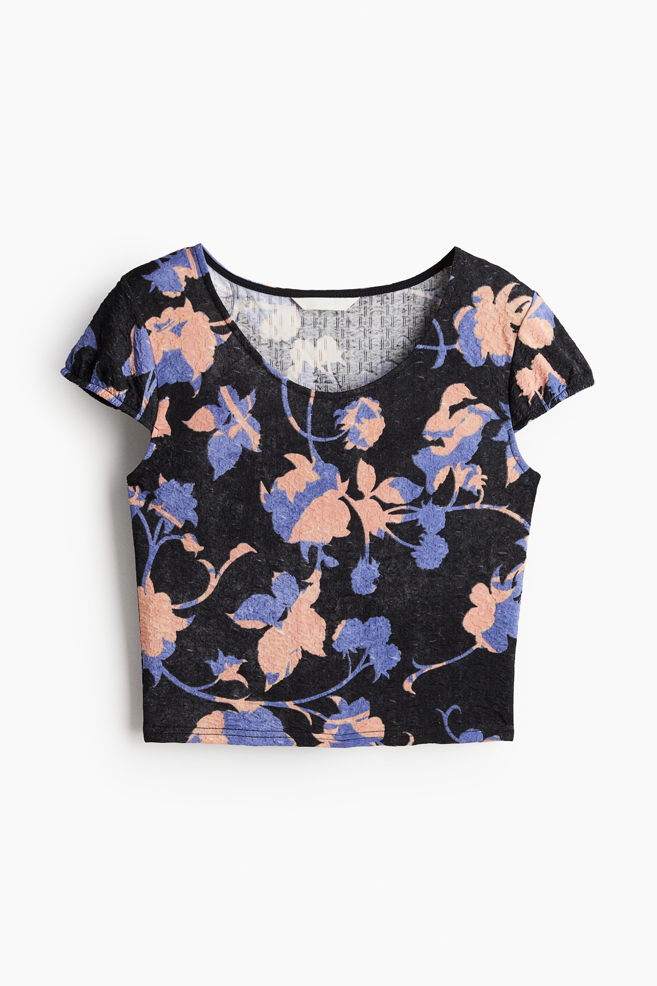表面感のあるジャージー素材のショートトップス。ボディにフィットするスタイル。ラウンドネック。キャップスリーブ。