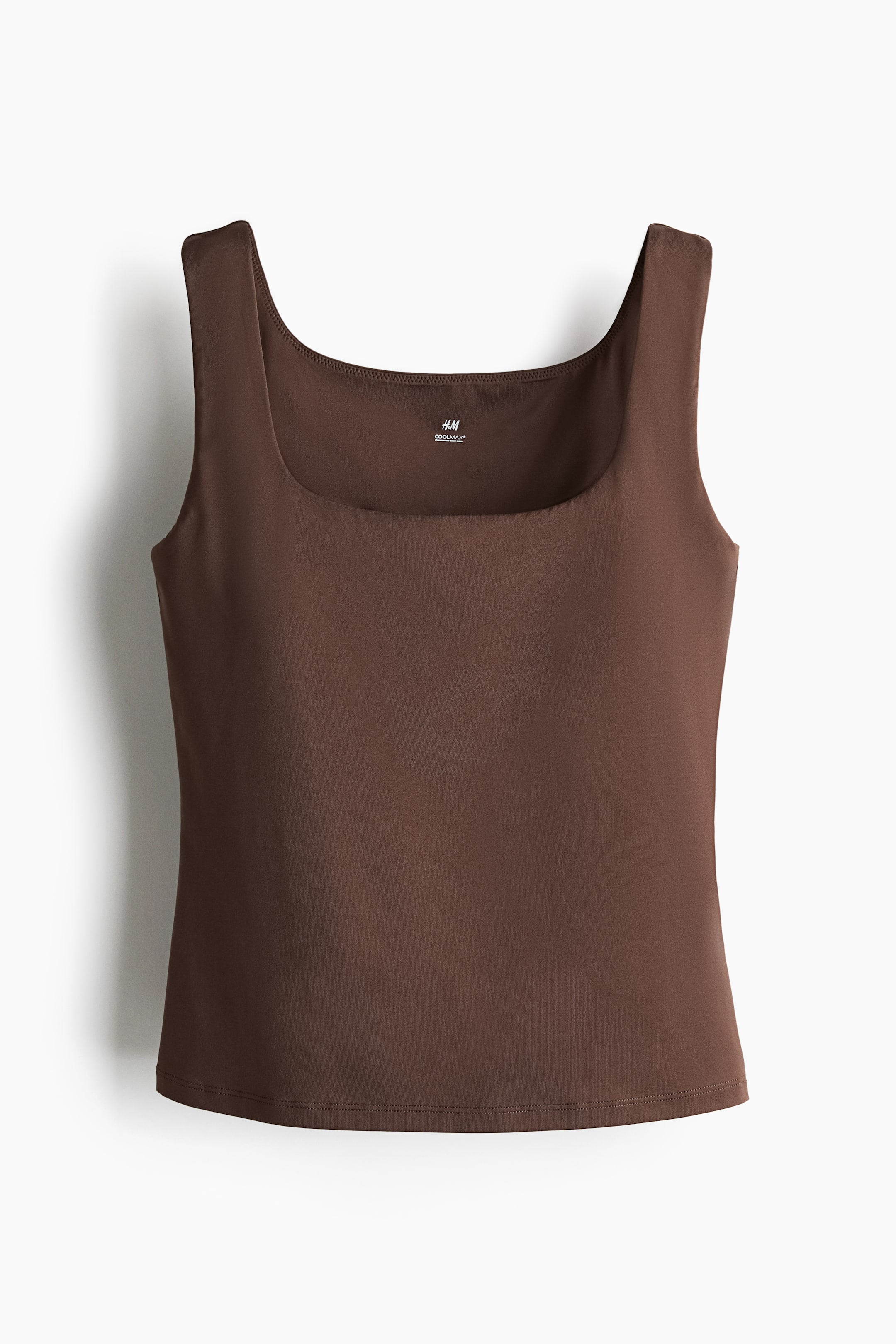 ソフトなジャージー素材で、ボディにフィットするタンクトップ。スクエアネック。ブラ一体型で、カップ部分に取り外しできるパッド入り。ブラの裾にゴム入り。COOLMAX®繊維を採用したアイテム。COOLMAX® は糸の断面に溝がある特殊な繊維で、体から生地表面に湿気を逃がすように設計されています。