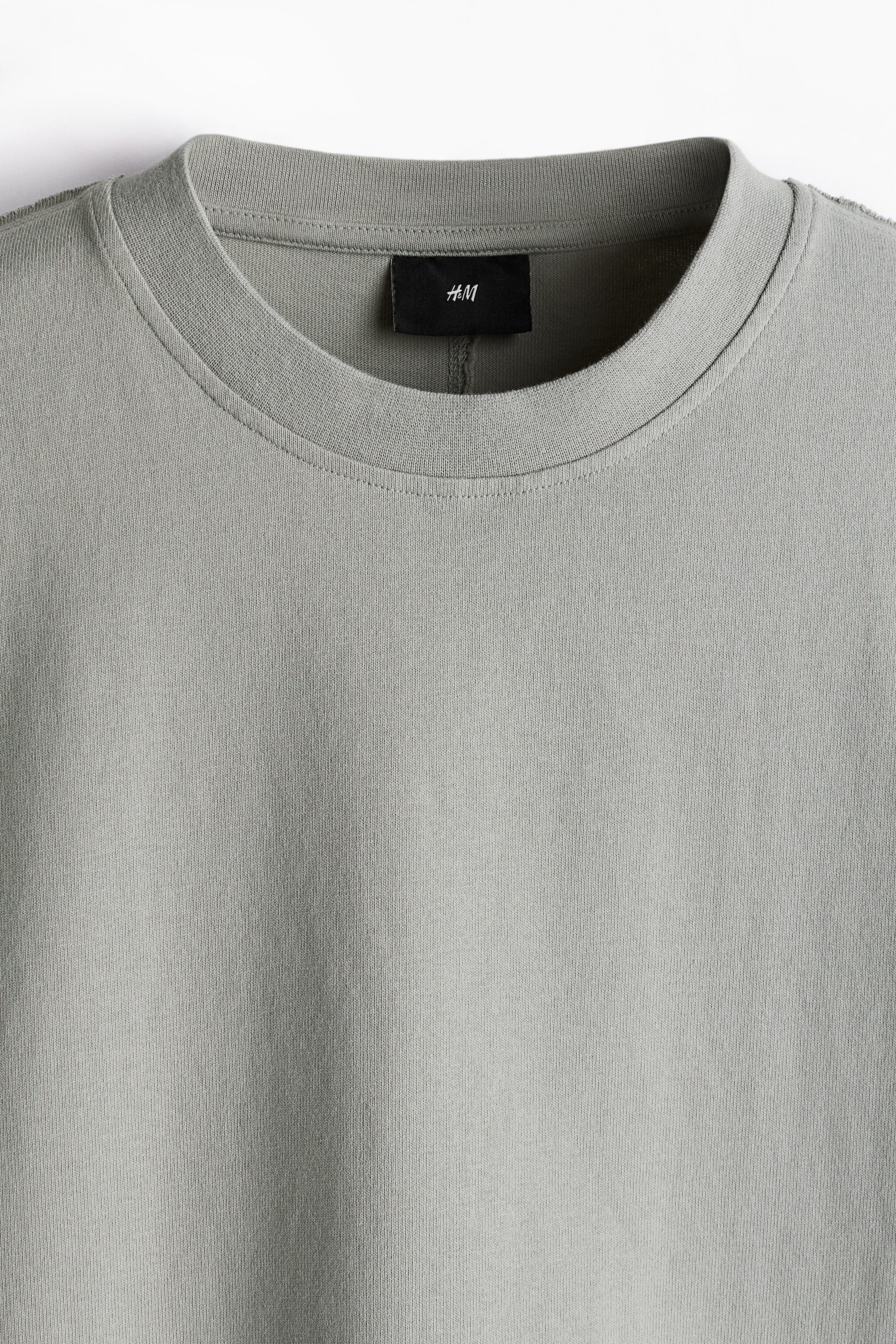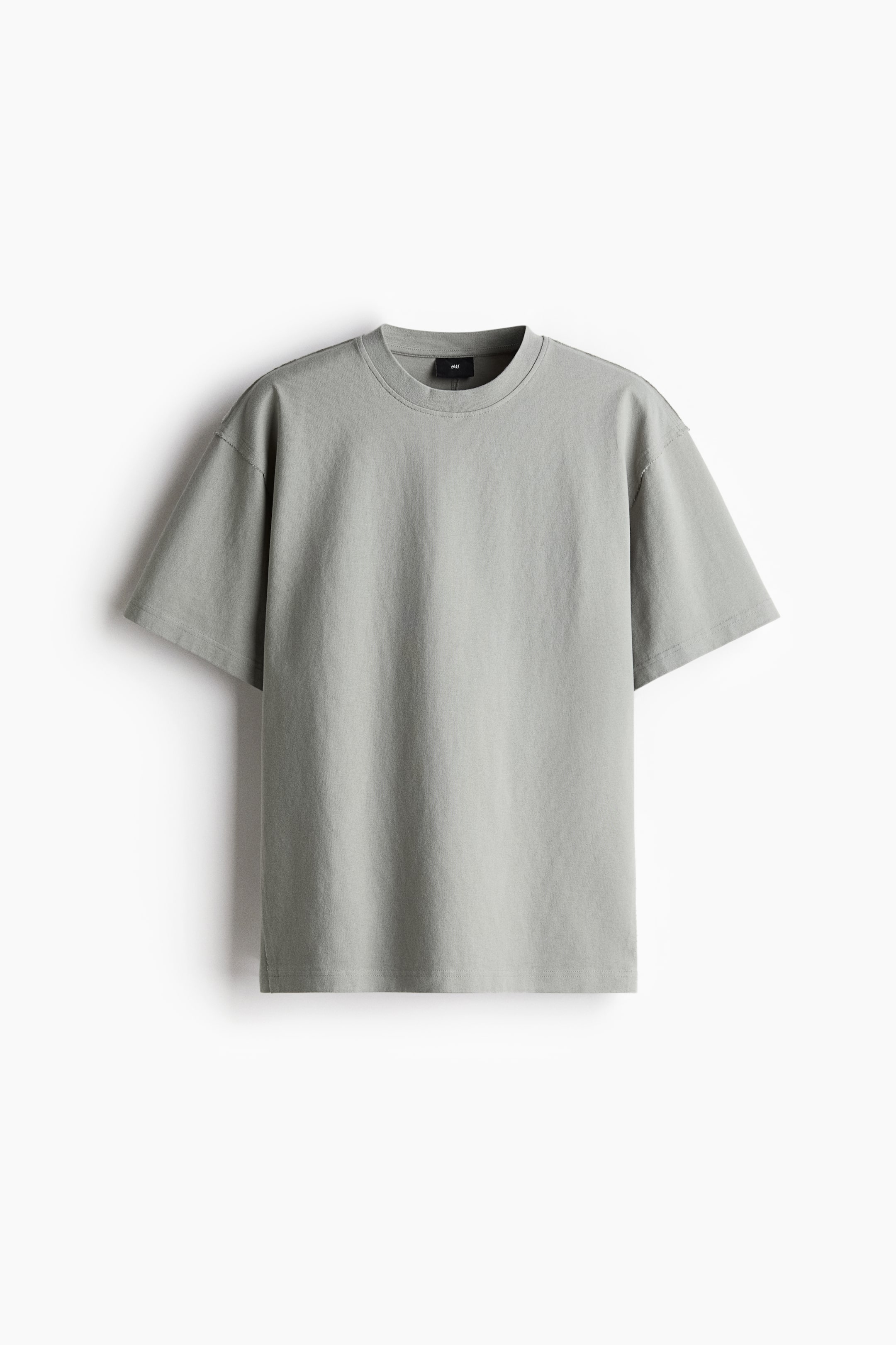 T-shirt in heavyweight cotton jersey with a round, rib-trimmed neckline, dropped shoulders, visible seam down the back and a straight-cut hem. Loose fit for a generous but not oversized silhouette.