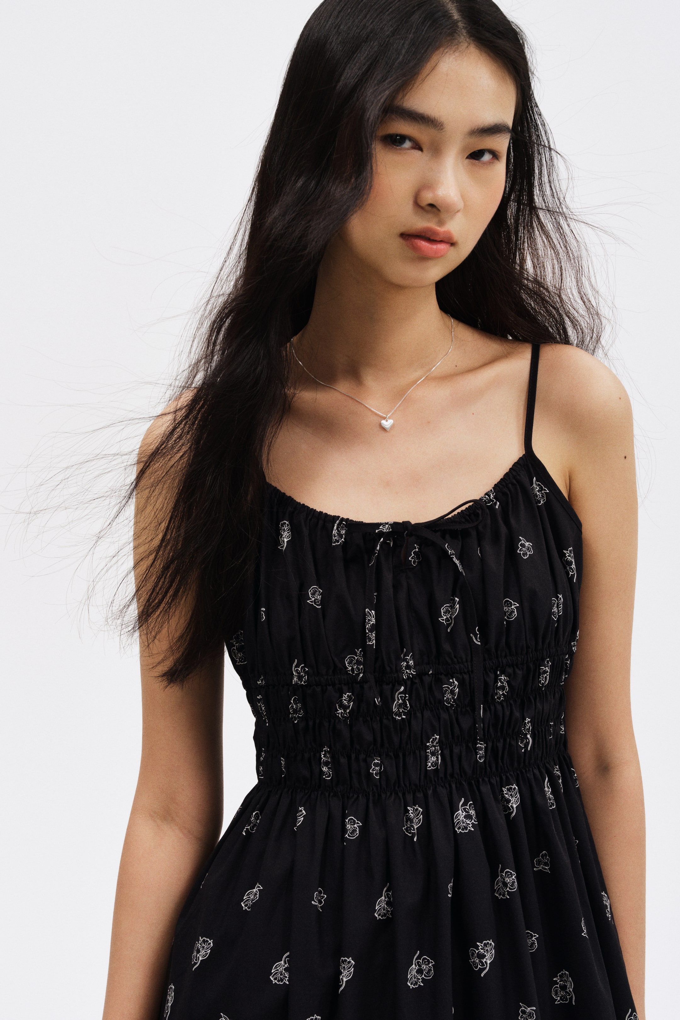 - フレア, シャーリング/スモッキング, キャミソールワンピース, タイフロント