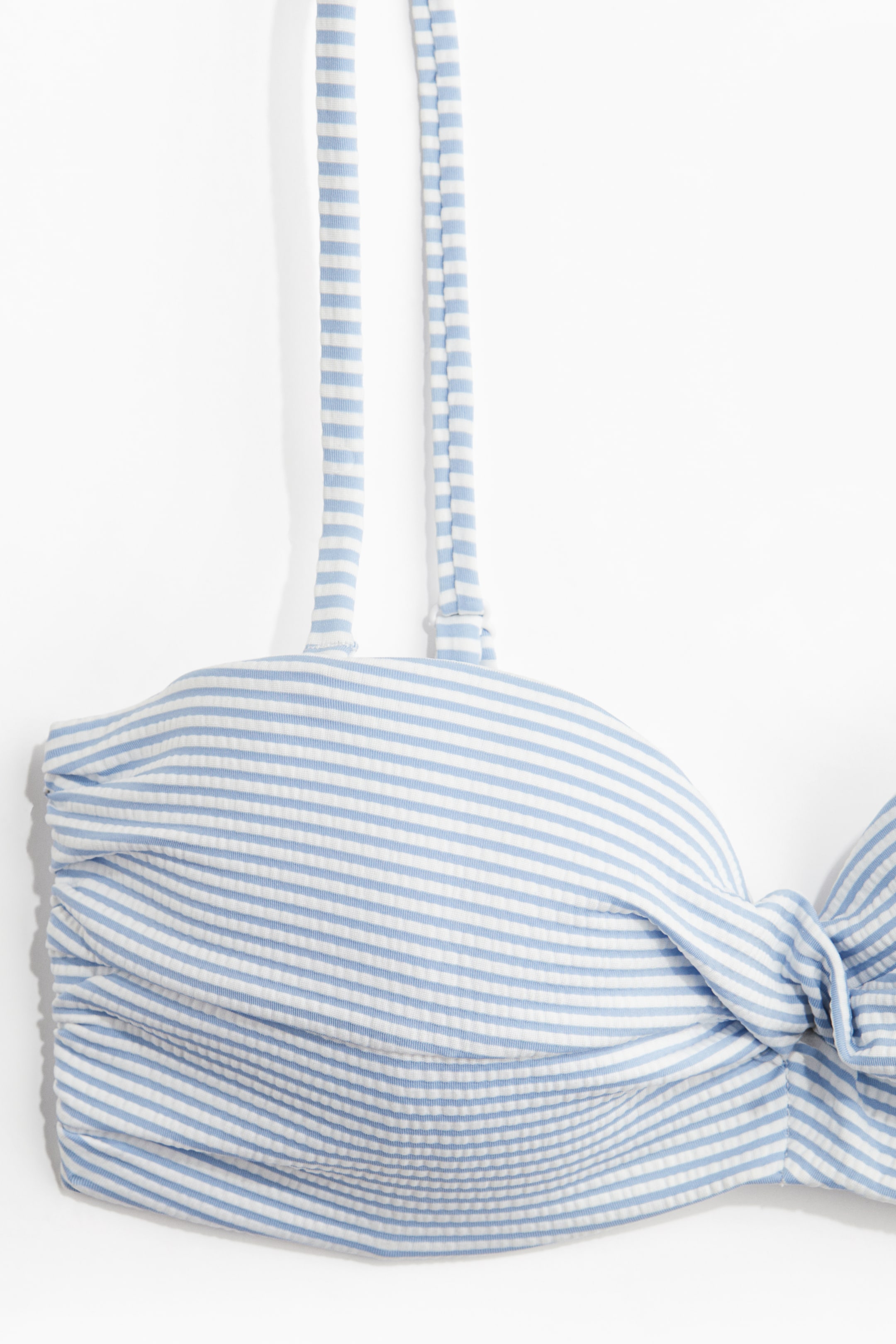 バルコネットスタイルのビキニトップ。裏地付き。パッド入りのワイヤーカップ付きで、きれいにバストアップ。トップライン内側の縁にシリコンが施されています。サイドにボーン入り。長さ調節可能なショルダーストラップが付いており、ストラップは取り外しOK。バックに留め位置の調節が可能なフック付き。