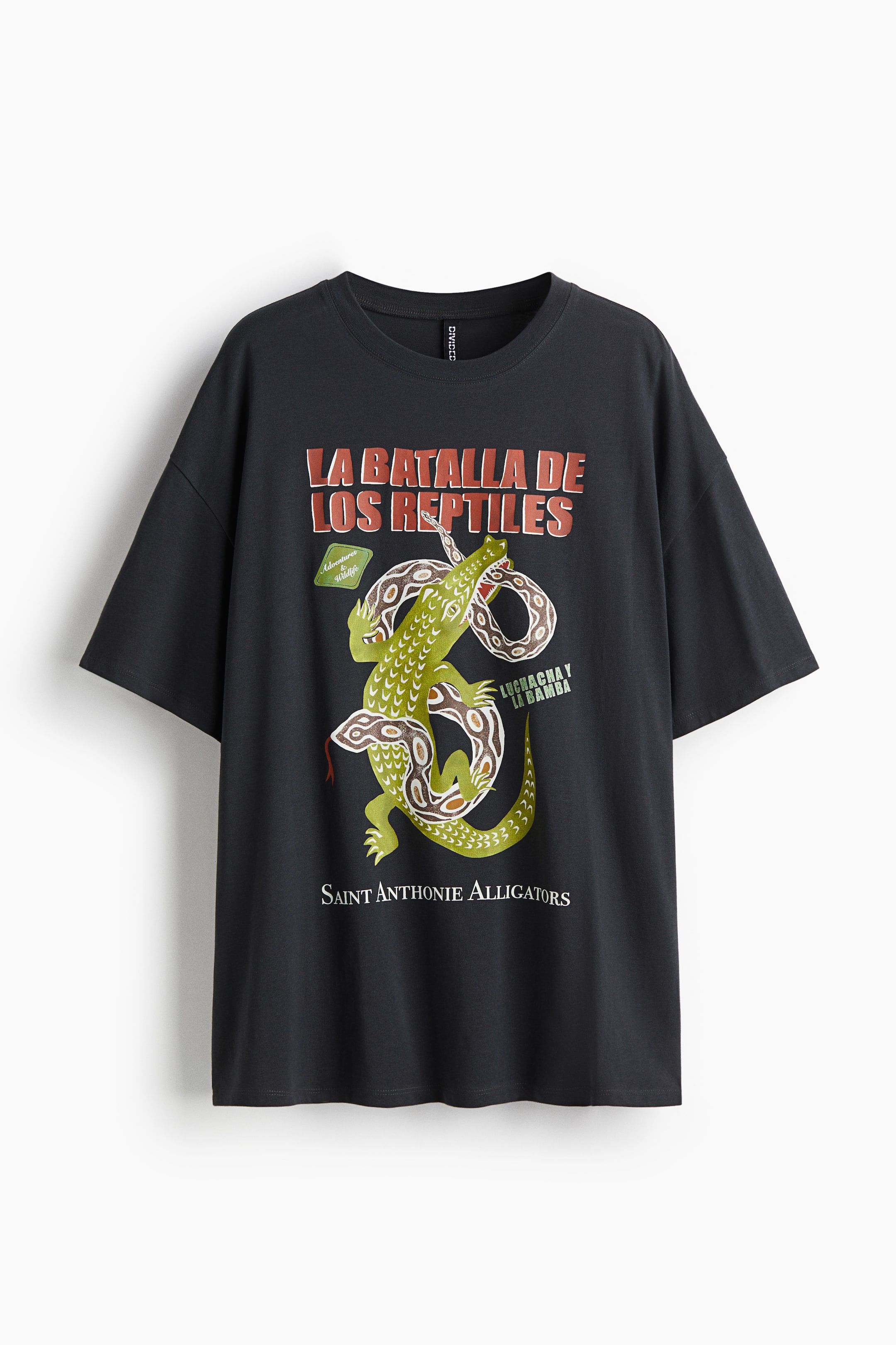 プリントをあしらったオーバーサイズTシャツ。コットンジャージー素材。ラウンドネック。ドロップショルダー。裾はストレートカット。