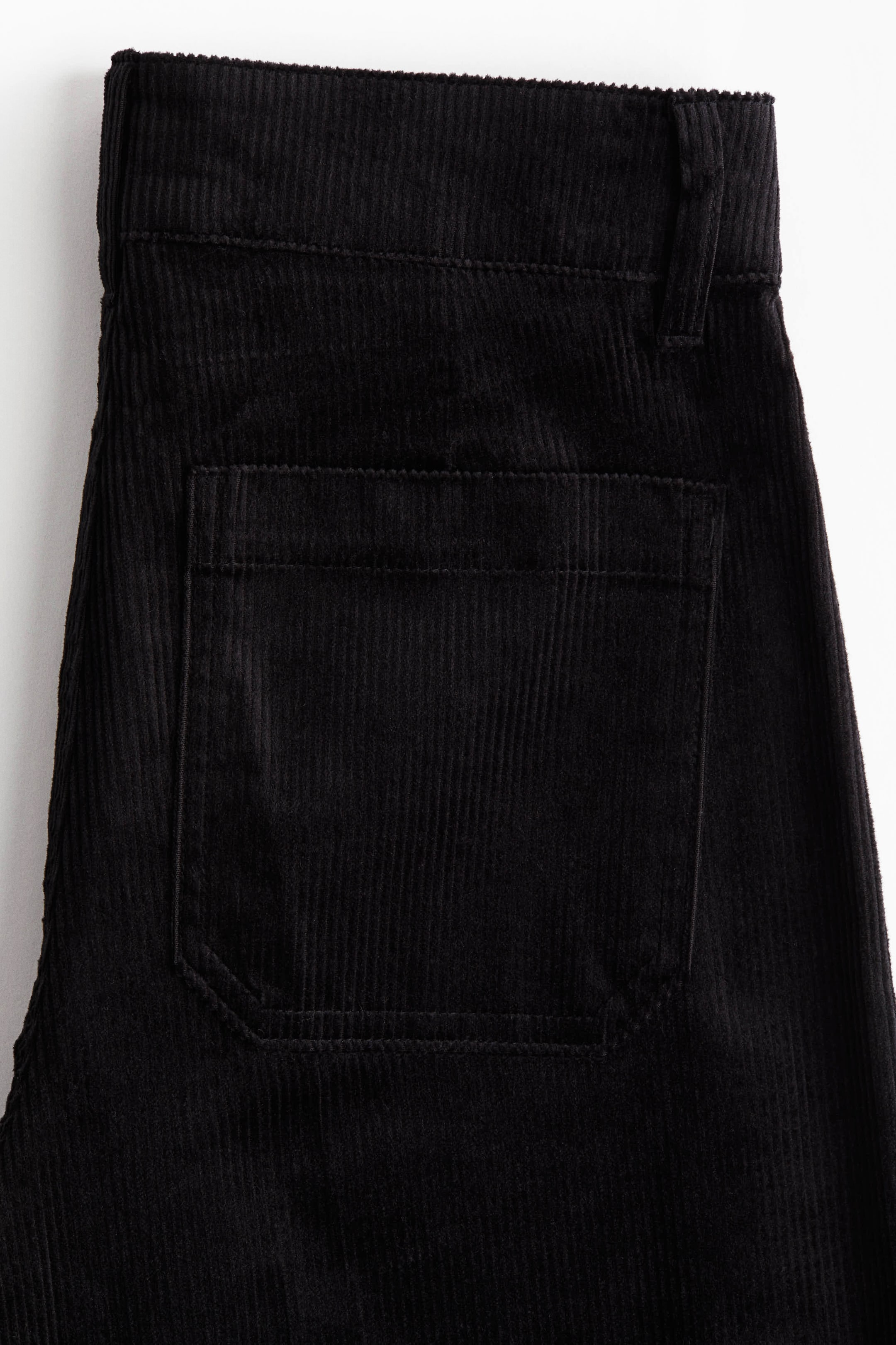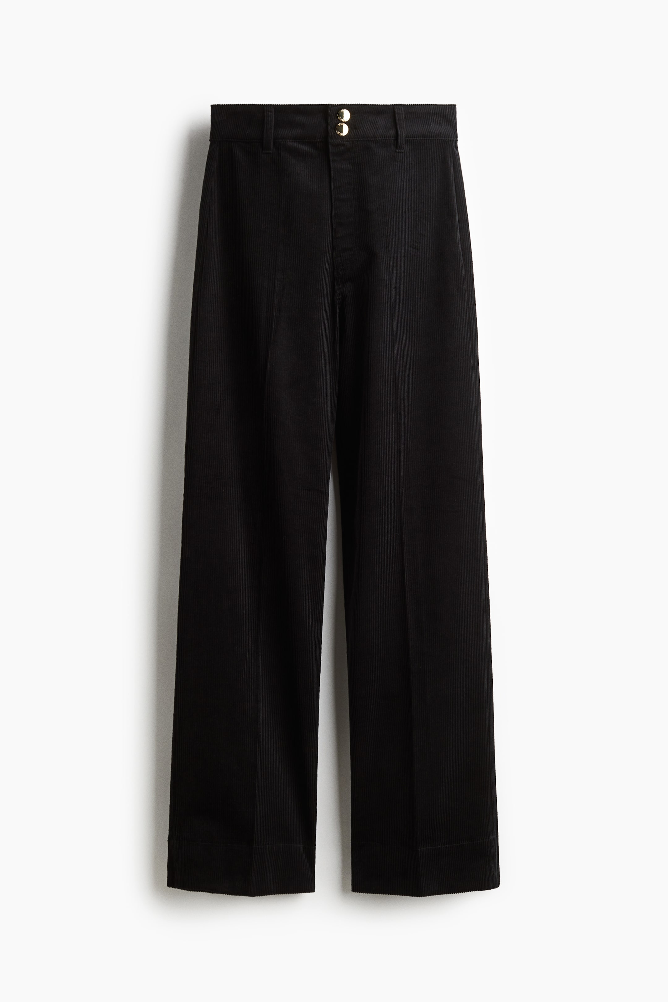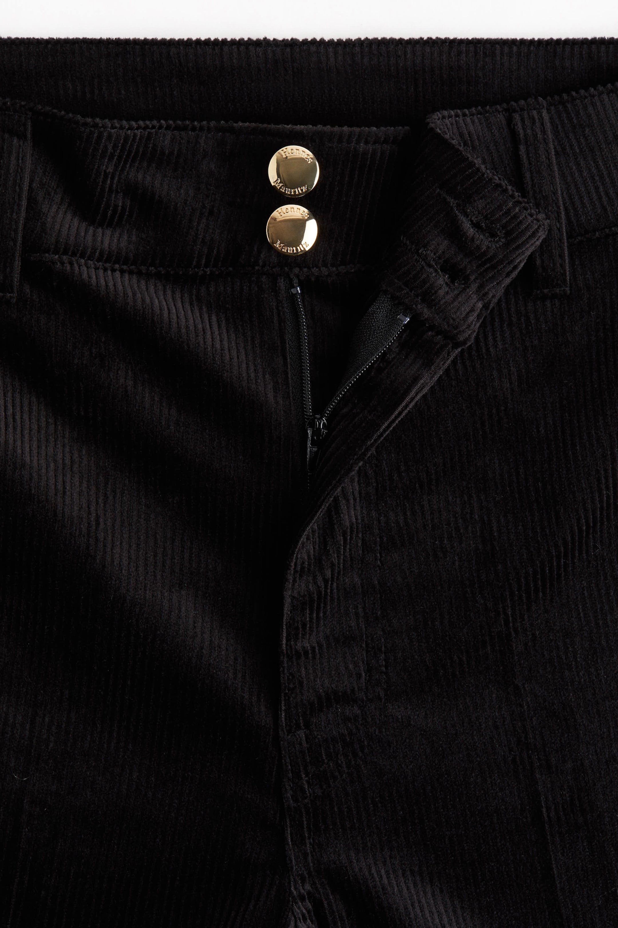 ソフトなコットンコーデュロイ素材のパンツ。ハイウエスト。ボタン&ジップフライ。オープンタイプのバックポケット付き。ストレートレッグで、フロントとバックに折り目付き。