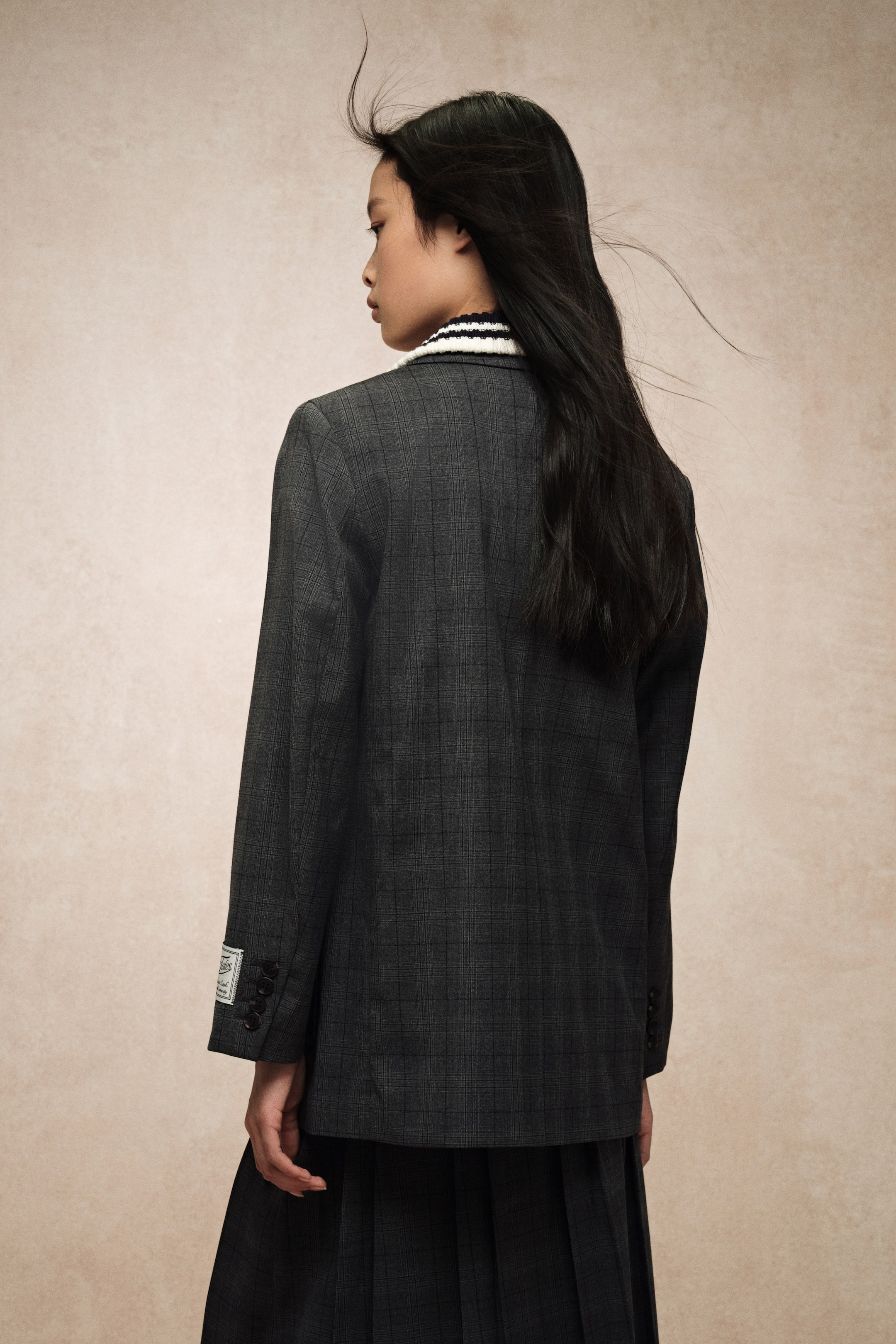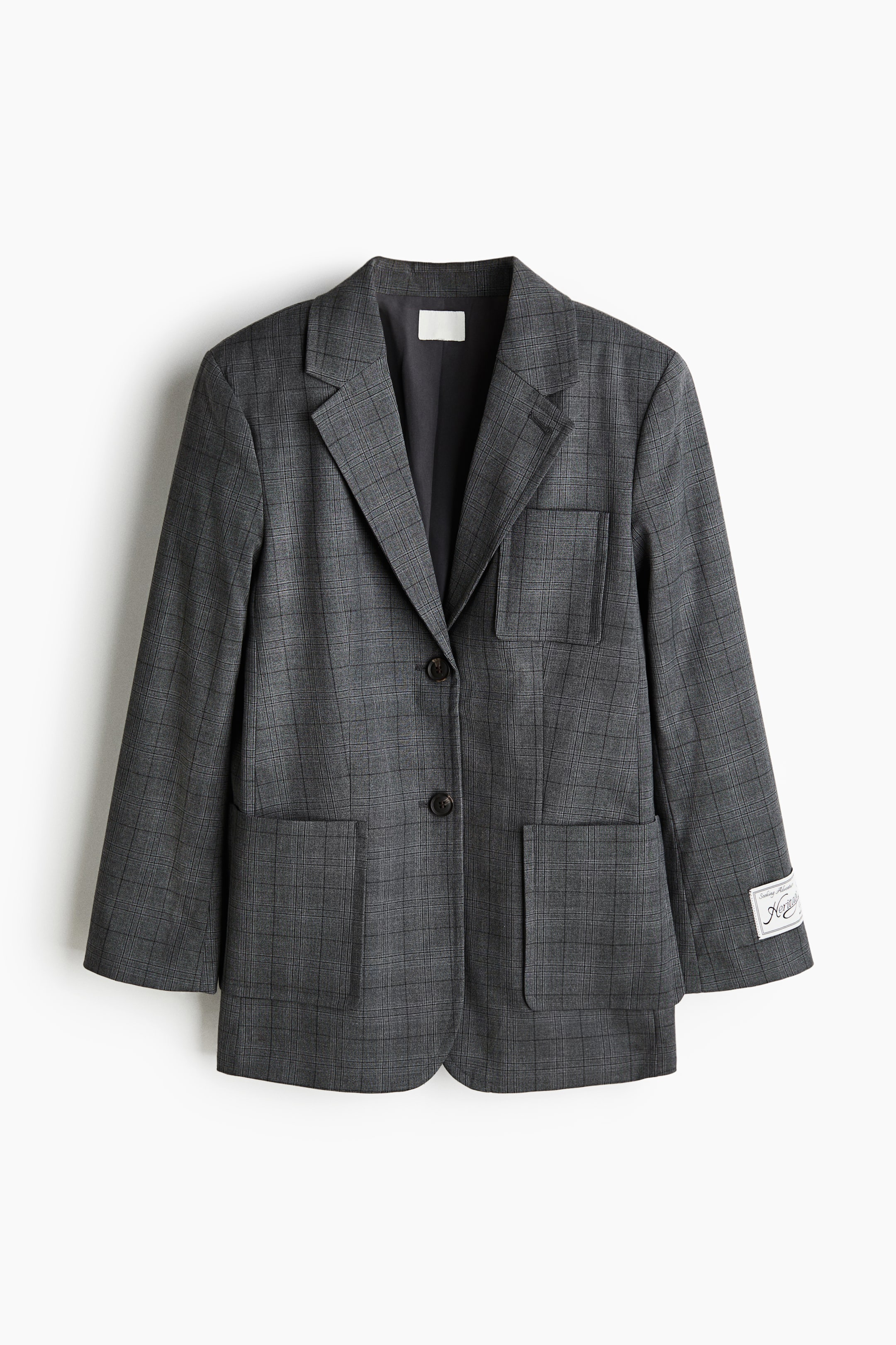 織物素材のブレザー。レギュラーフィット。ノッチラペルが付いたデザインで、フロントボタン。パッチタイプの片胸ポケットとフロントポケット付き。長袖で、袖口に飾りボタン付き。裏地付き。