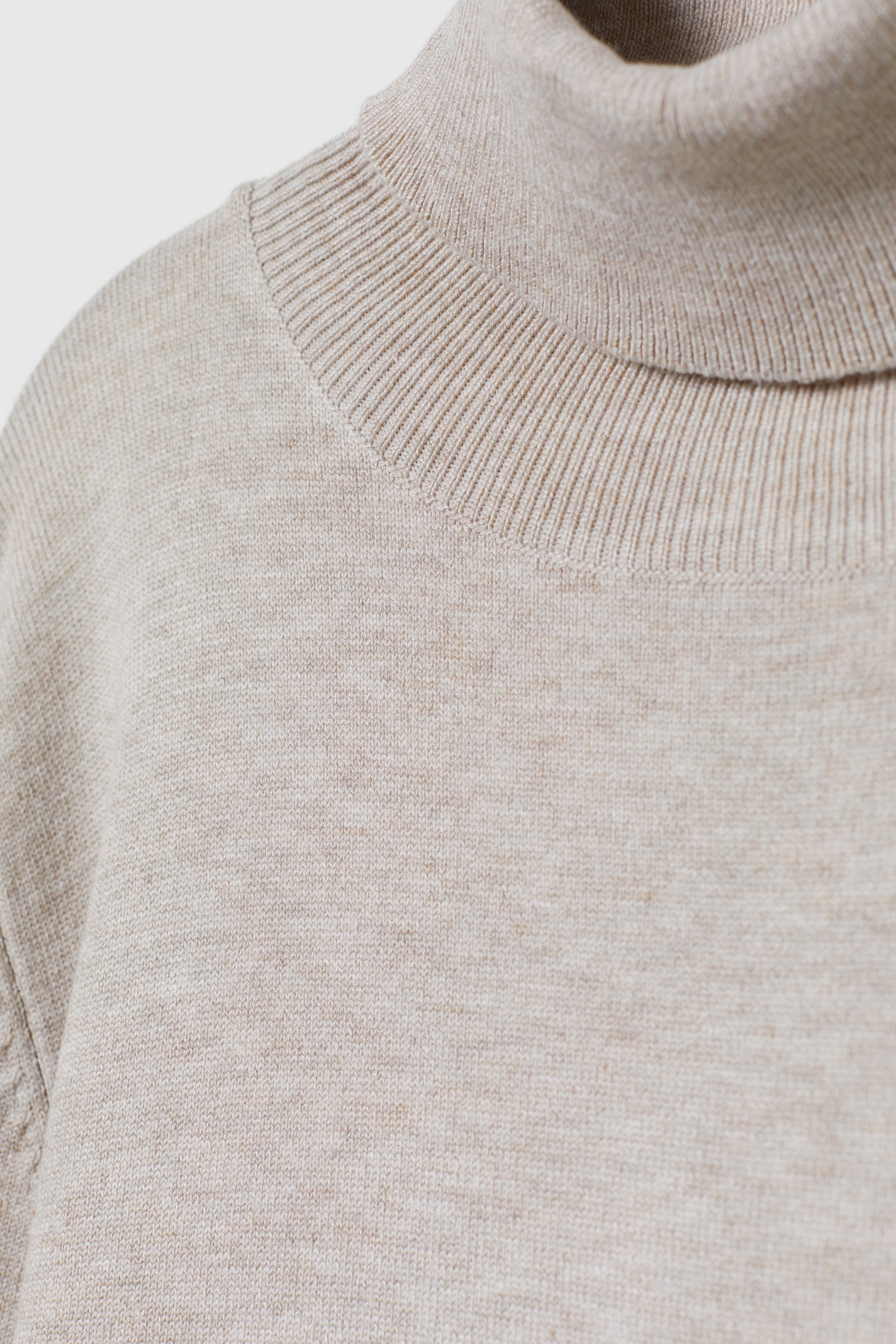 부드러운 파인니트 소재의 터틀넥 스웨터. 골지 옷단.