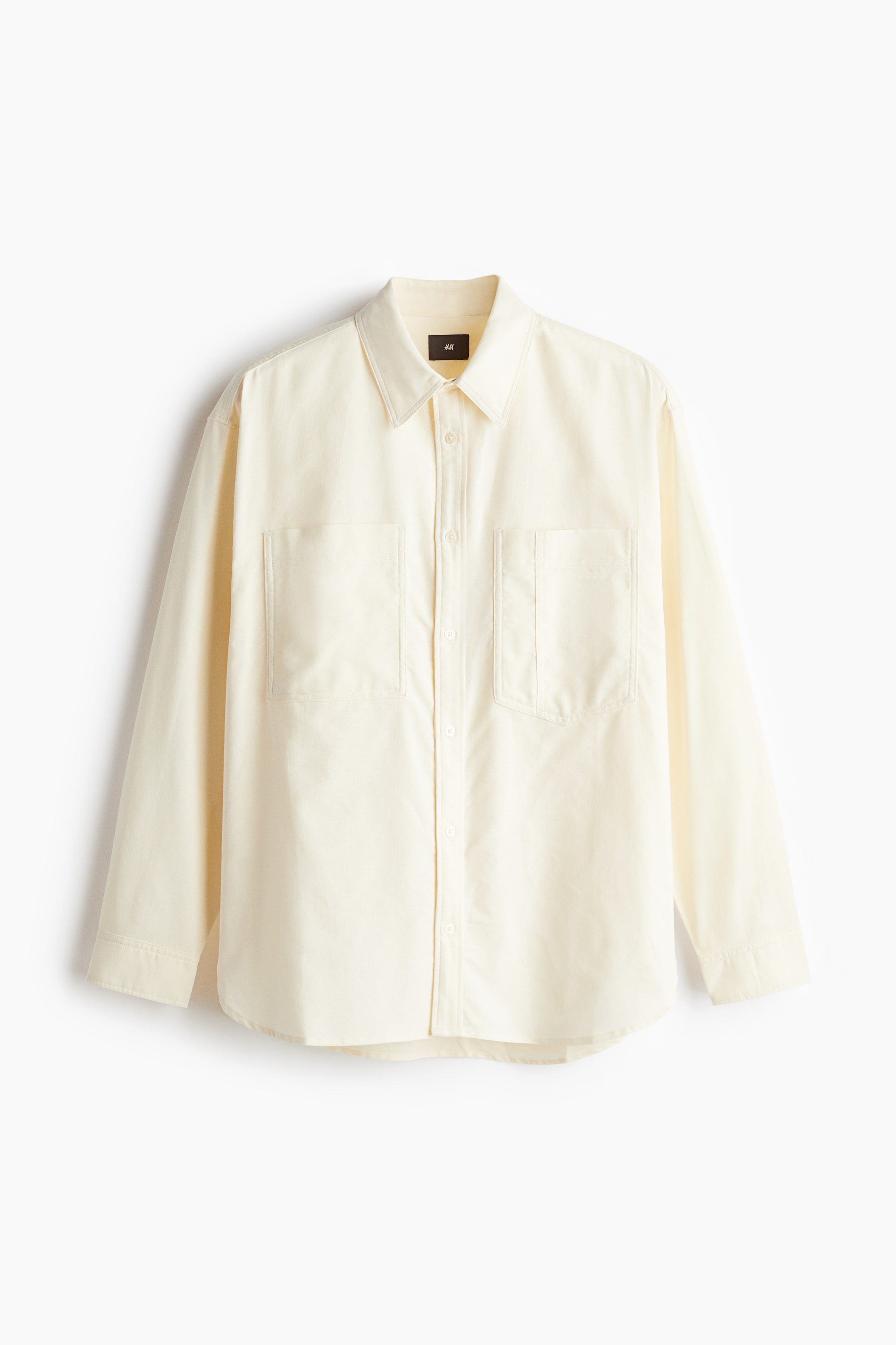 옥스퍼드 코튼 소재의 셔츠. 턴다운 칼라. 버튼단이 있는 클래식 프런트 스타일. 박스 플리츠가 잡힌 뒷면 요크. 가슴 포켓. 플래킷과 링크 버튼이 있는 긴소매. 소맷단 버튼. 세미 라운드 헴라인. 넉넉하지만 오버사이즈보다는 약간 피트되는 루즈핏 실루엣.