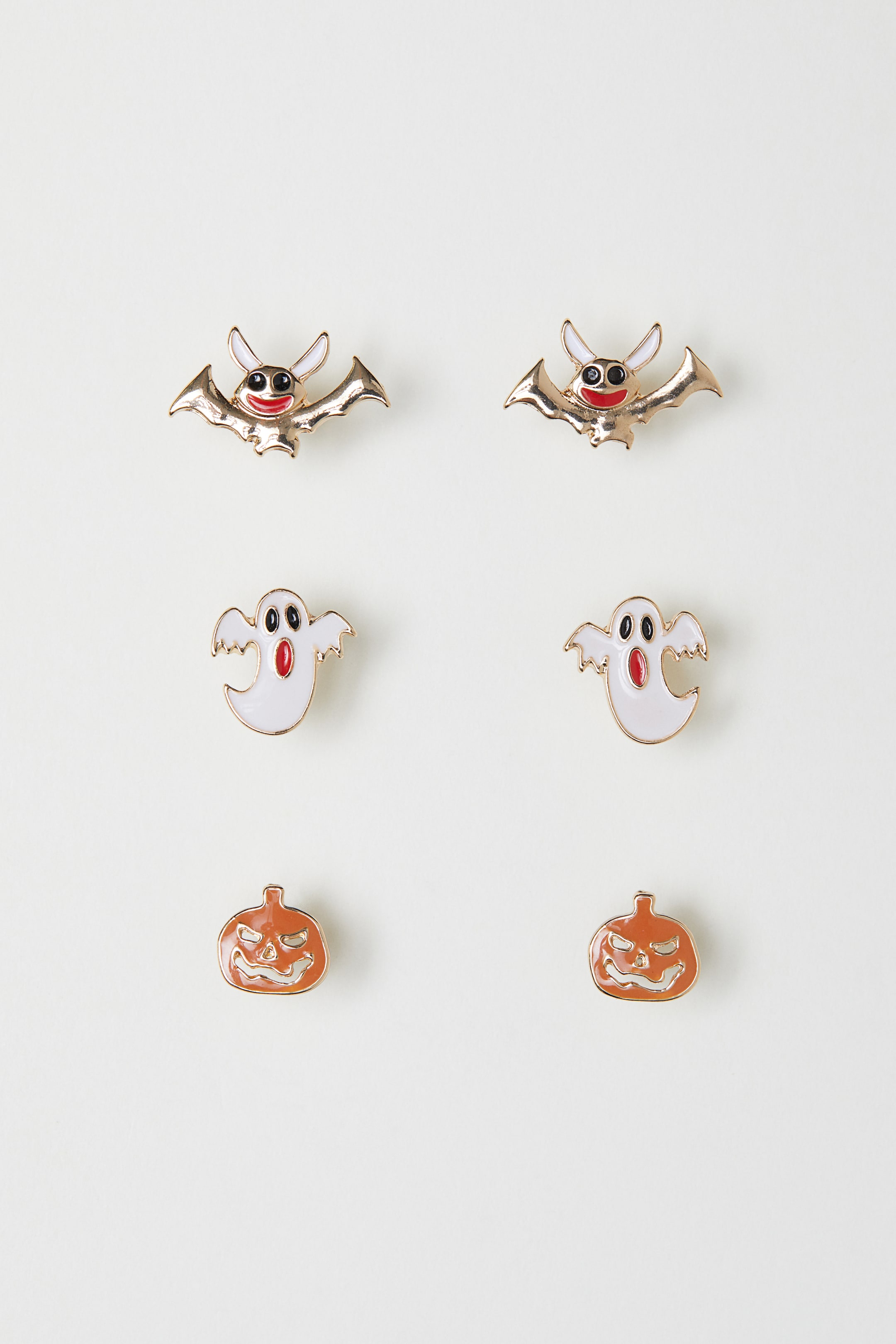 Kleine oorbellen van metaal met geëmailleerde details. Afmetingen 1 cm tot 2 cm.