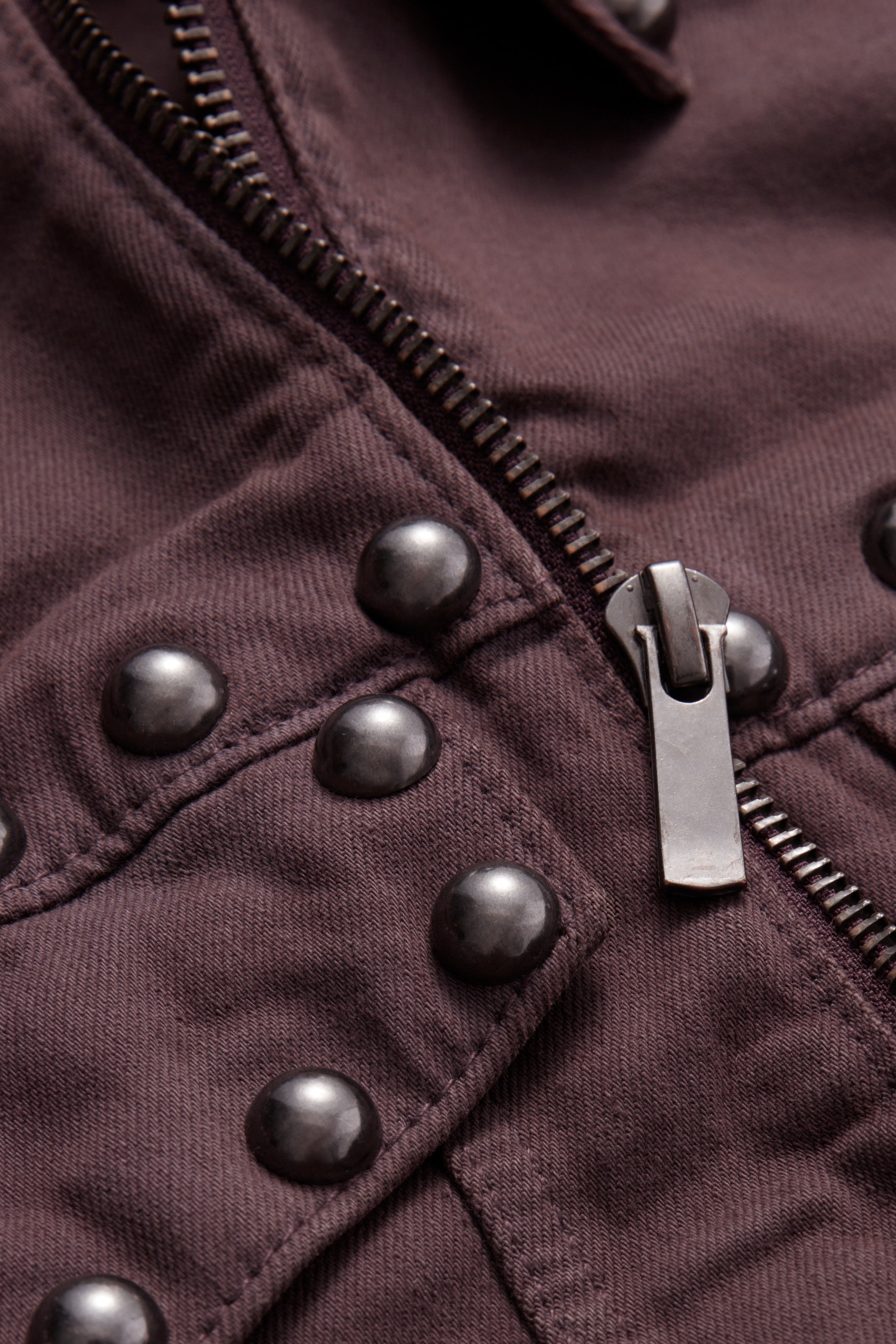 - Dark Brown, Effen, Dark brown denim fabric embellished with studs
