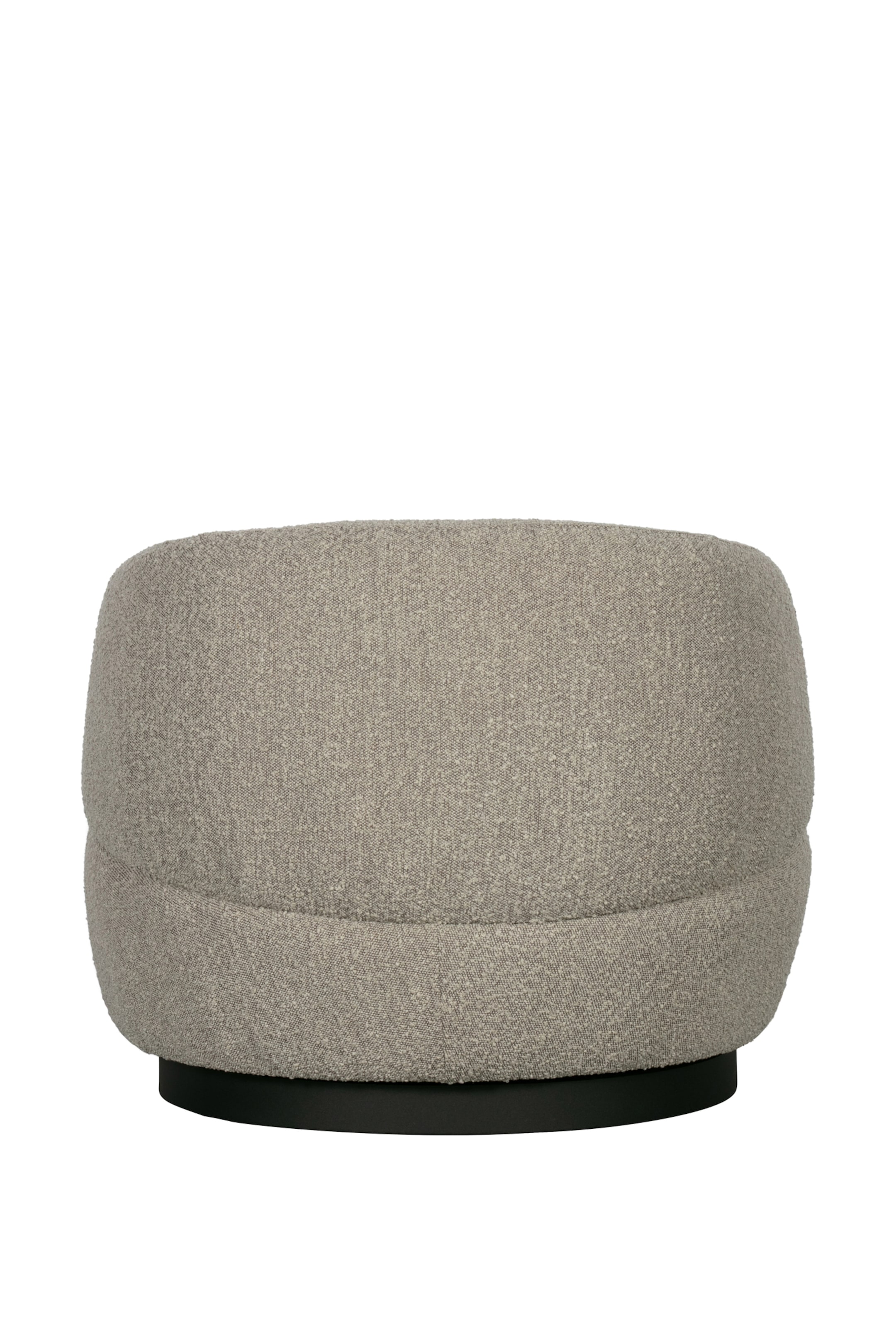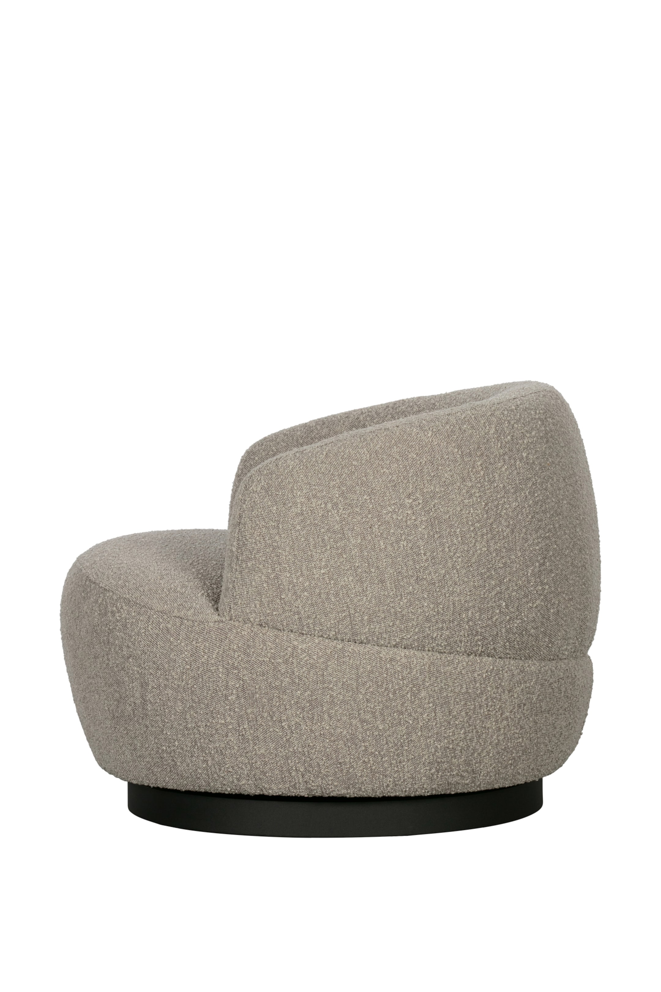 The Woolly revolving chair from the collection of Dutch brand WOOOD has a friendly, soft look and features rounded shapes. Our Moro bouclé is a blended, woven fabric and a trendy addition to any interior. The fabric consists of 95% polyester and 5% polyacrylic and has a Martindale of 50,000. This combination of synthetic fibres makes the fabric easy to keep clean. The bonded backing provides extra strength and reduces the risk of tears or wear. This woven fabric has a soft and full grip and a modern look. H 71 cm x W 84 cm x D 88 cm. Seat height: 46 cm, Seat width: 56 cm, Seat depth: 60 cm. Foot height: 5.5 cm, Leg diameter: 67 cm. Armrest height: 60 cm. Maximum load capacity: 125 kg, Weight: 18.5 kg.