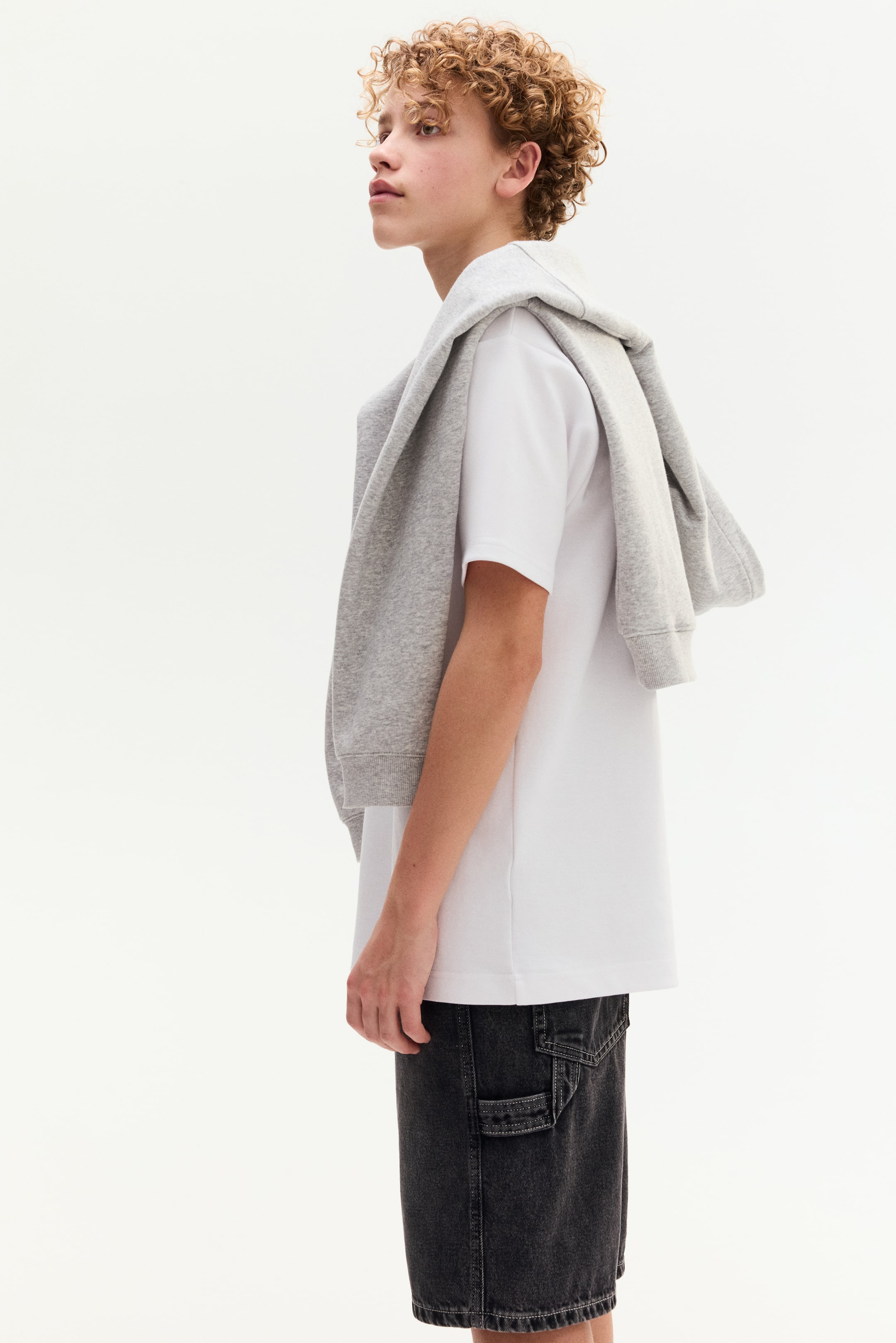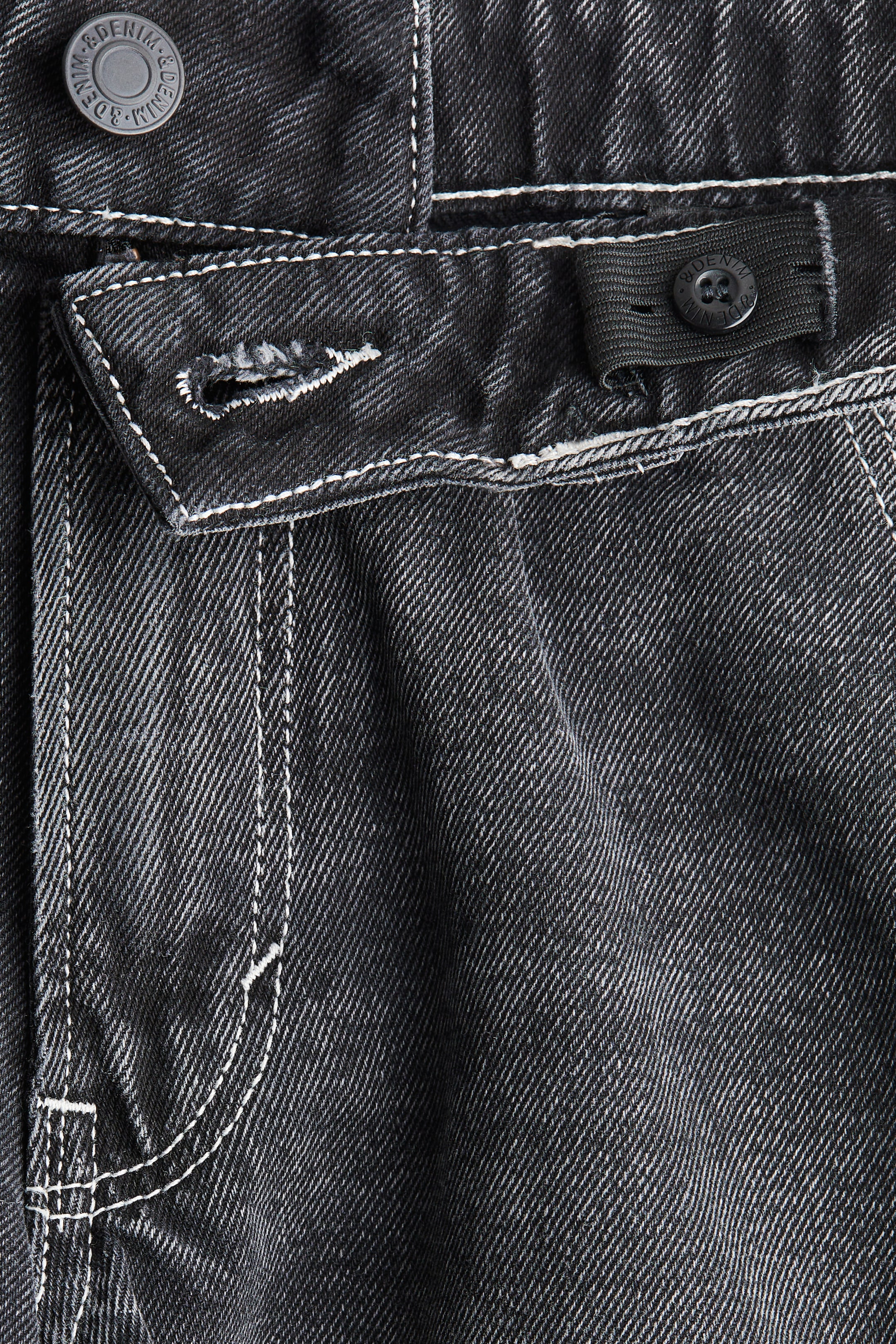 Een short van stevig geweven katoen. Ruime pasvorm. De short heeft verstelbaar elastiek in de taille, een gulp met ritssluiting en knoop, een hamerlus op de ene pijp en zakken op de andere pijp.
