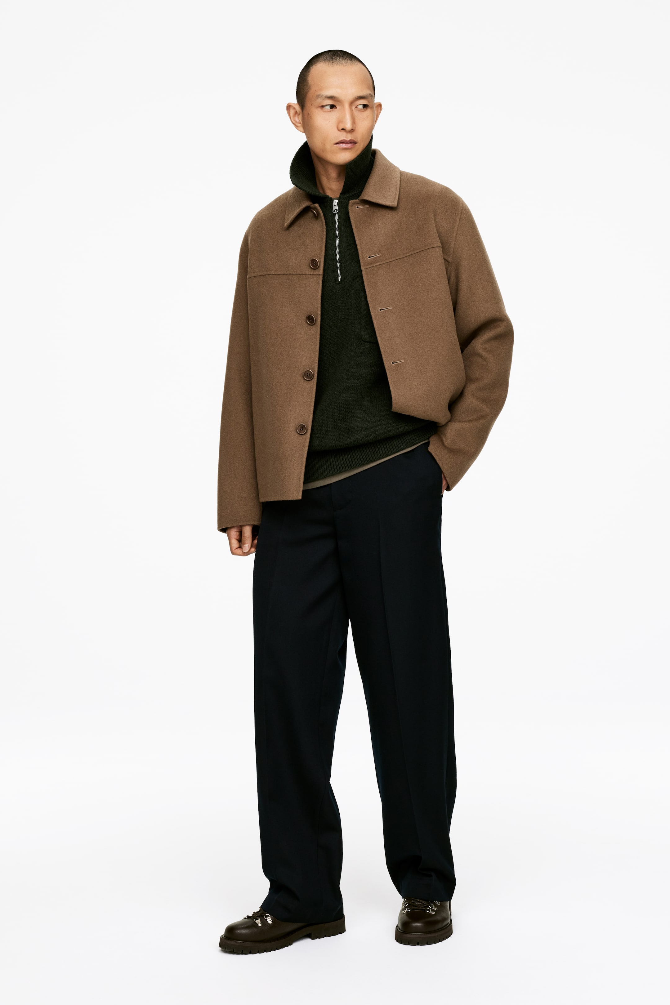 Relaxed-fit poloshirt gemaakt van wol. Het heeft een puntkraag, een halve ritssluiting aan de voorkant en een enkele opgestikte zak op de borst.