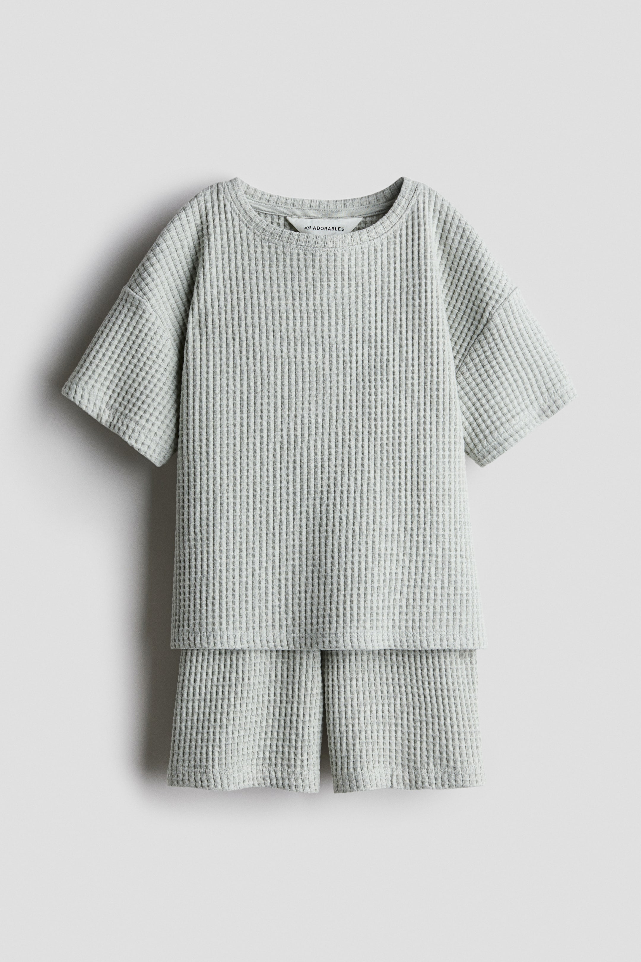 H&M Adorables. Een set bestaande uit een T-shirt en een short van zacht wafeltricot gemaakt van hoogwaardig katoen. Het T-shirt heeft een ronde hals, flink verlaagde schoudernaden en een rechte belijning aan de onderkant. De short heeft verstelbaar elastiek in de taille. Ons katoenen tricot is van dikkere, duurzamere kwaliteit met een hoog gewicht per m2, die comfortabel in het dragen is. H&M Adorables is een met zorg samengestelde collectie van mooie, hoogwaardige items met een tijdloze uitstraling.