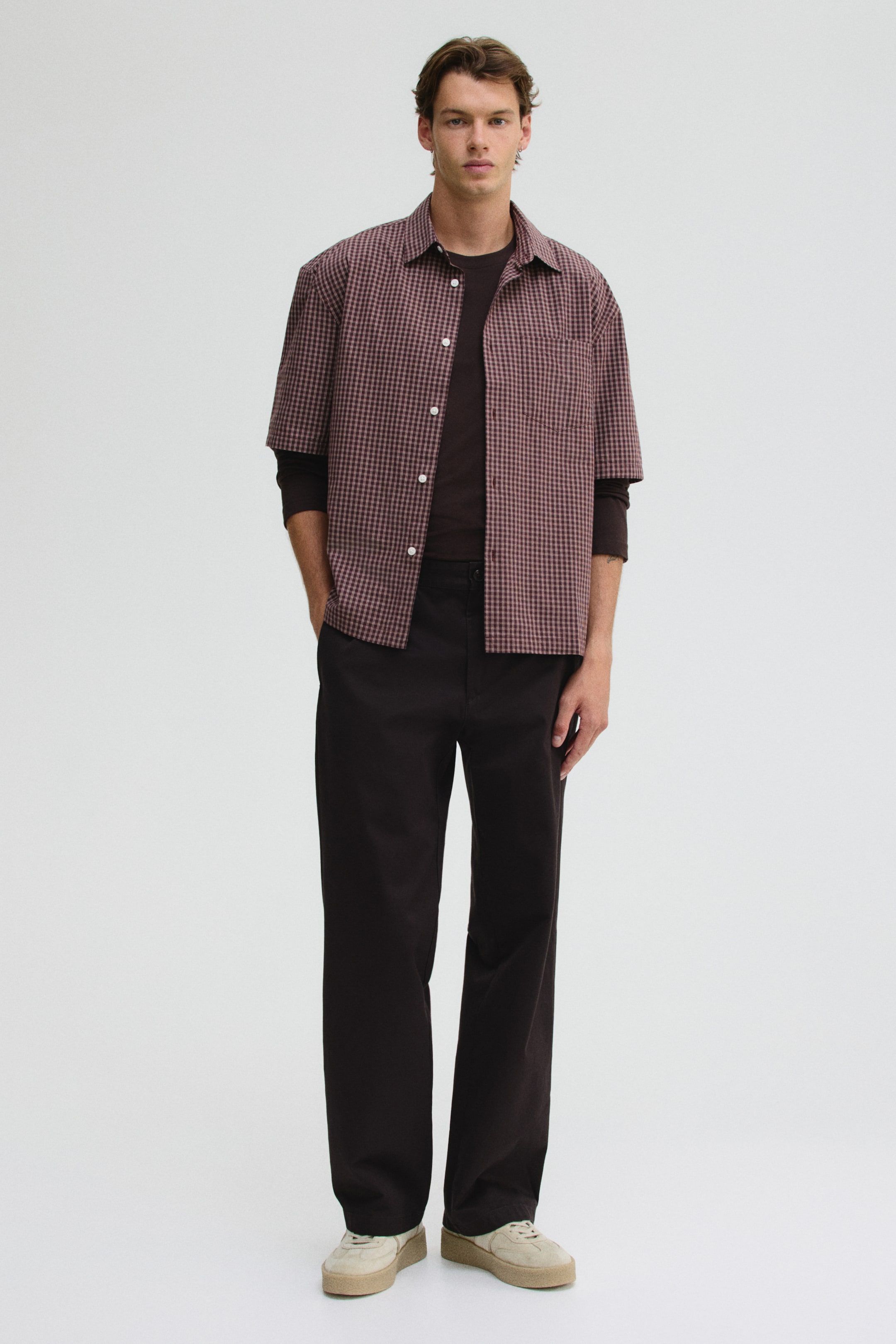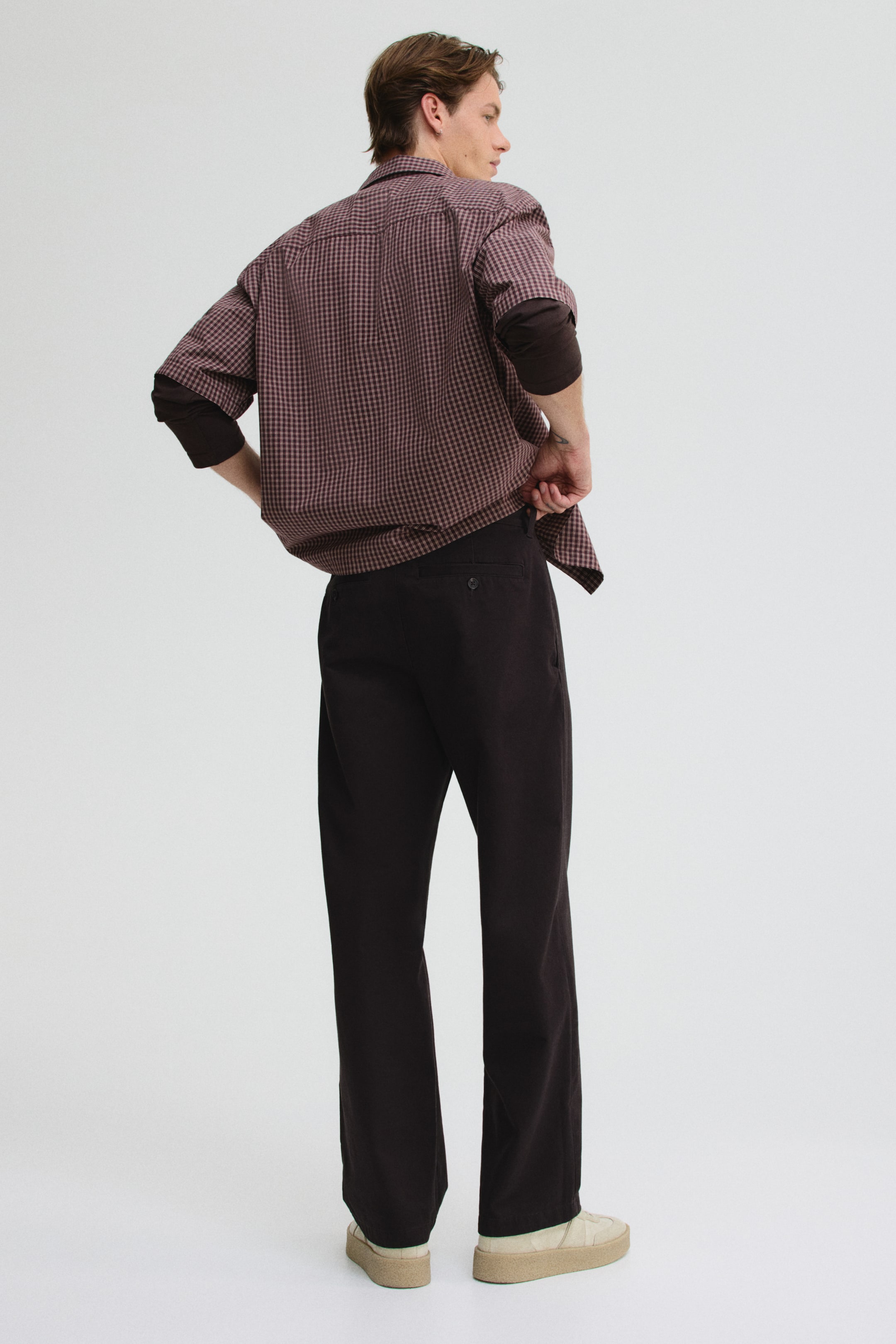 Een chino van katoenen twill met een gulp met ritssluiting en knoop, schuin ingezette steekzakken, een blind muntzakje en paspelzakken met knoop achter. Relaxed Fit voor een casual maar niet oversized silhouet.