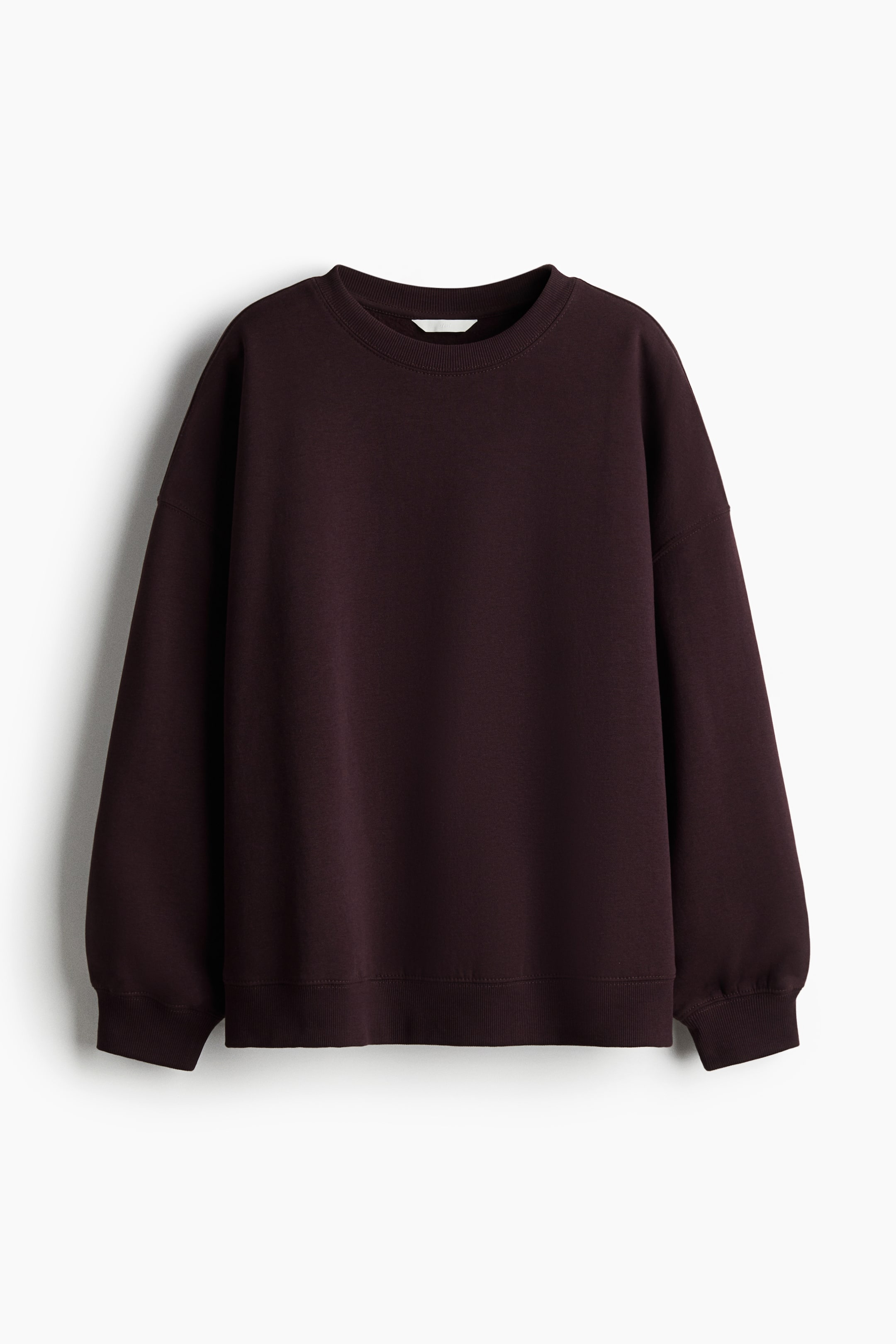 En oversized genser i myk kvalitet med myk, børstet innside. Rund hals med ribbestrikket kant, lav skuldersøm og lange ermer. Ribbestrikket kant nederst og på ermene.