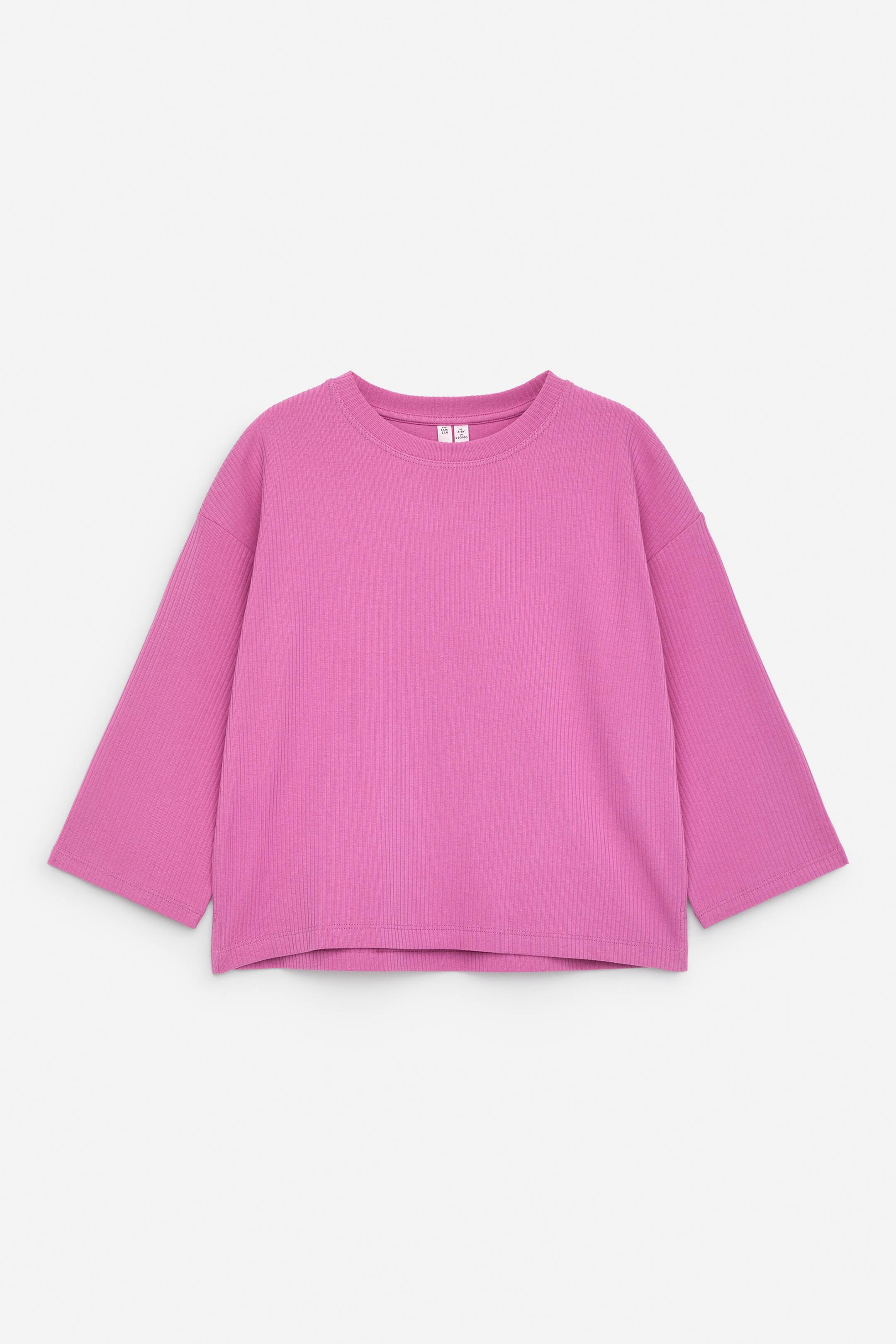 Langermet t-skjorte med lave skuldre laget av ribbet bomullsjersey. Normal passform.
