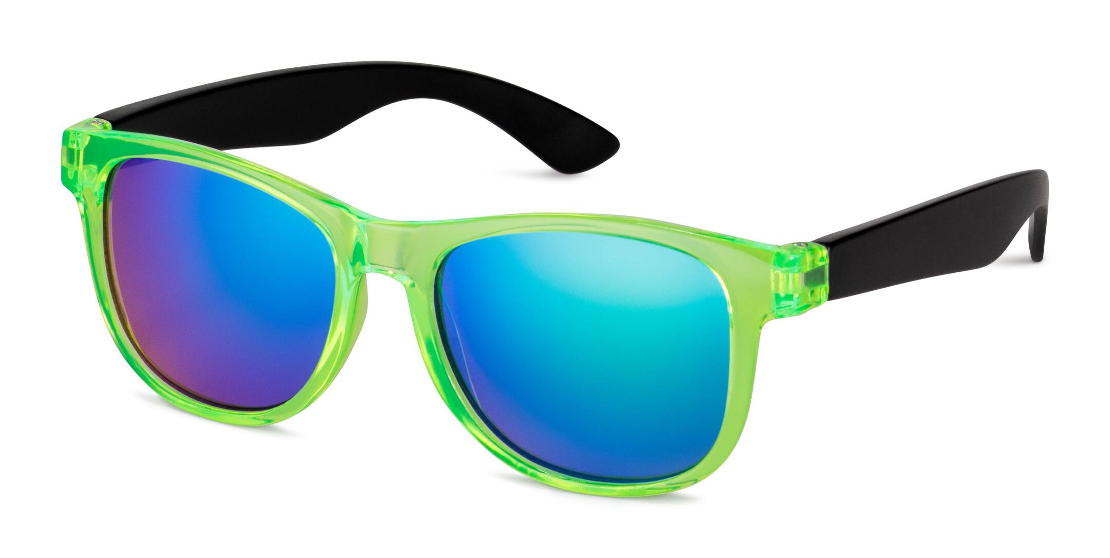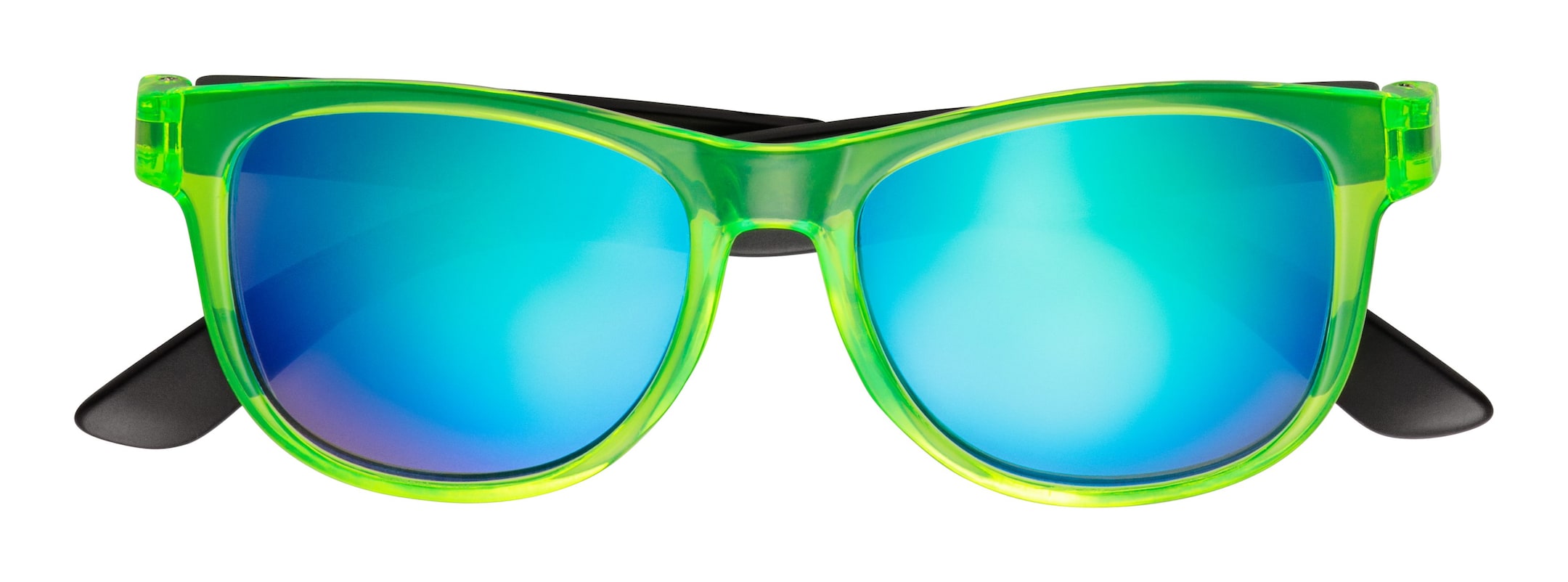 Okulary przeciwsłoneczne z lustrzanymi szkłami w plastikowych oprawkach. Filtr UV.