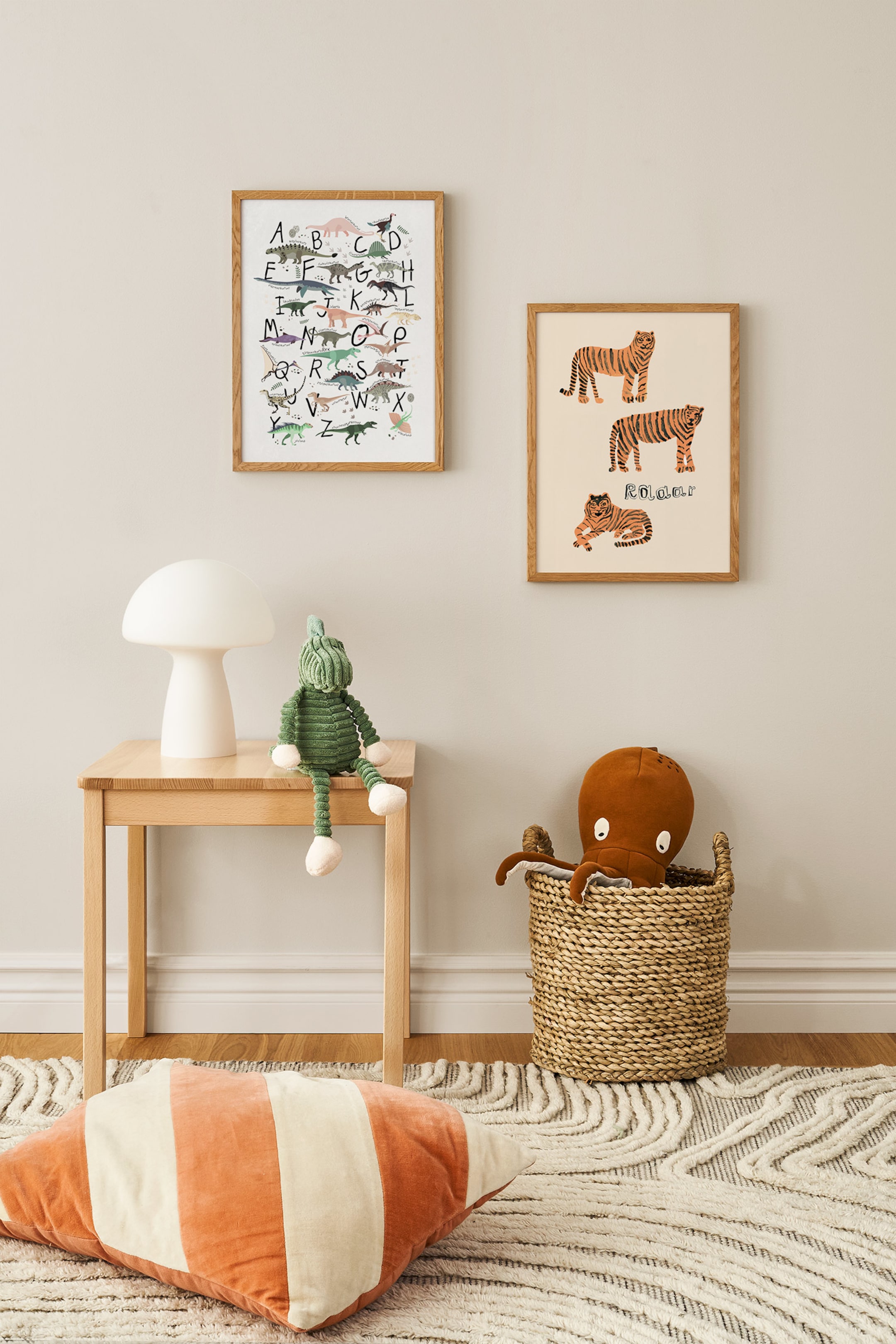 Czas na naukę alfabetu? Pozwól, że ta zabawna plakat pomoże Ci i jednocześnie poznasz kilka dinozaurów! Plakat Dino ABC będzie piękną ozdobą pokoju dziecięcego - a są też inne motywy dinozaurów, które można połączyć!