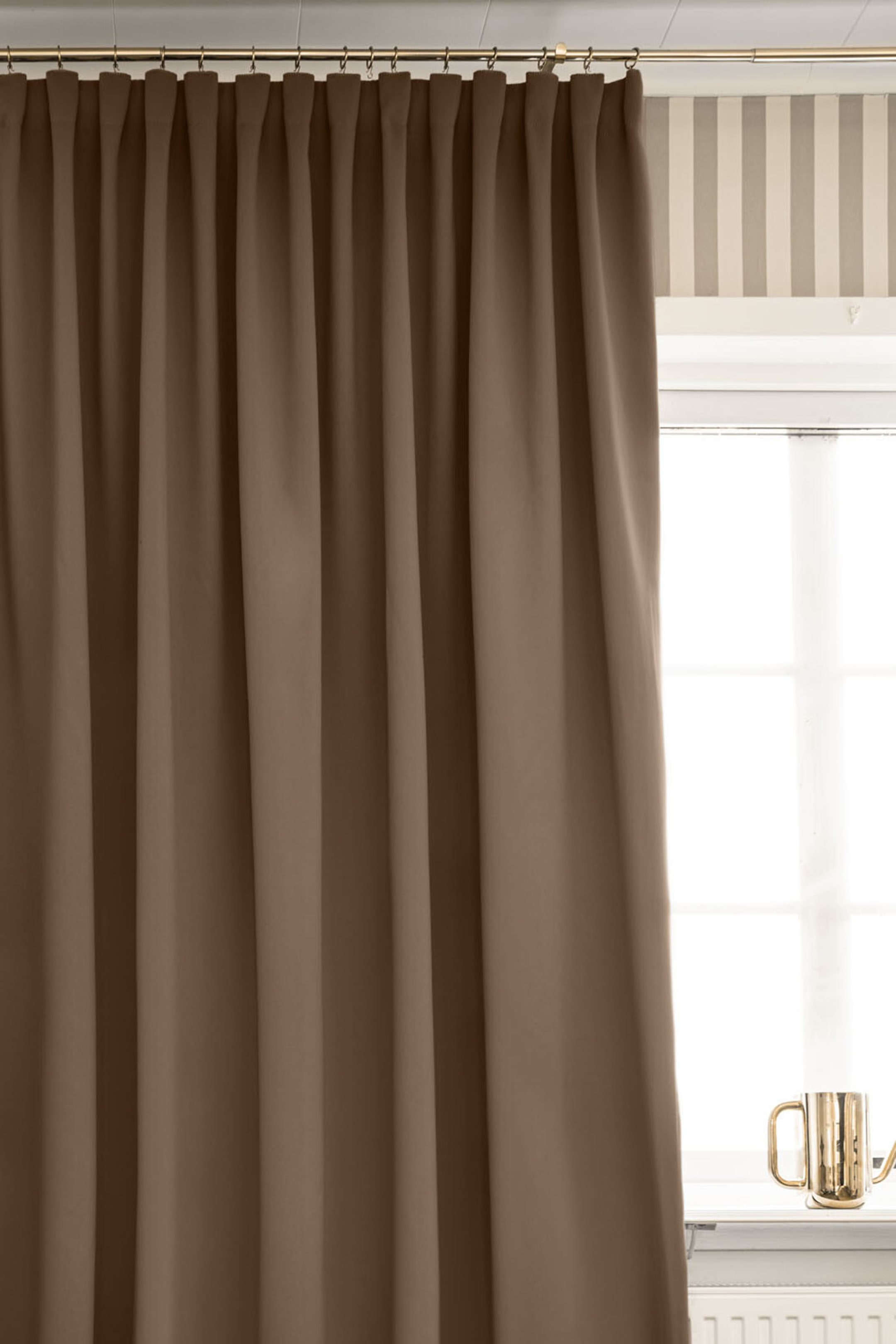 Zasłona przyciemniająca pomieszczenie, model o zwiększonej szerokości, z miękkiej, błyszczącej tkaniny, która zapewnia piękne drapowanie. Zasłona przyciemnia pomieszczenie, ale nie zapewnia 100% zaciemnienia. Elastyczna taśma wielofunkcyjna z czterema różnymi opcjami zawieszania zasłon: na drążku karnisza za pomocą pętli, z haczykami palcowymi, z haczykami marszczącymi lub nowoczesną taśmą wave (falującą). Haczyki nie wchodzą w skład zestawu. Pakiet zawiera jedną długość zasłony.