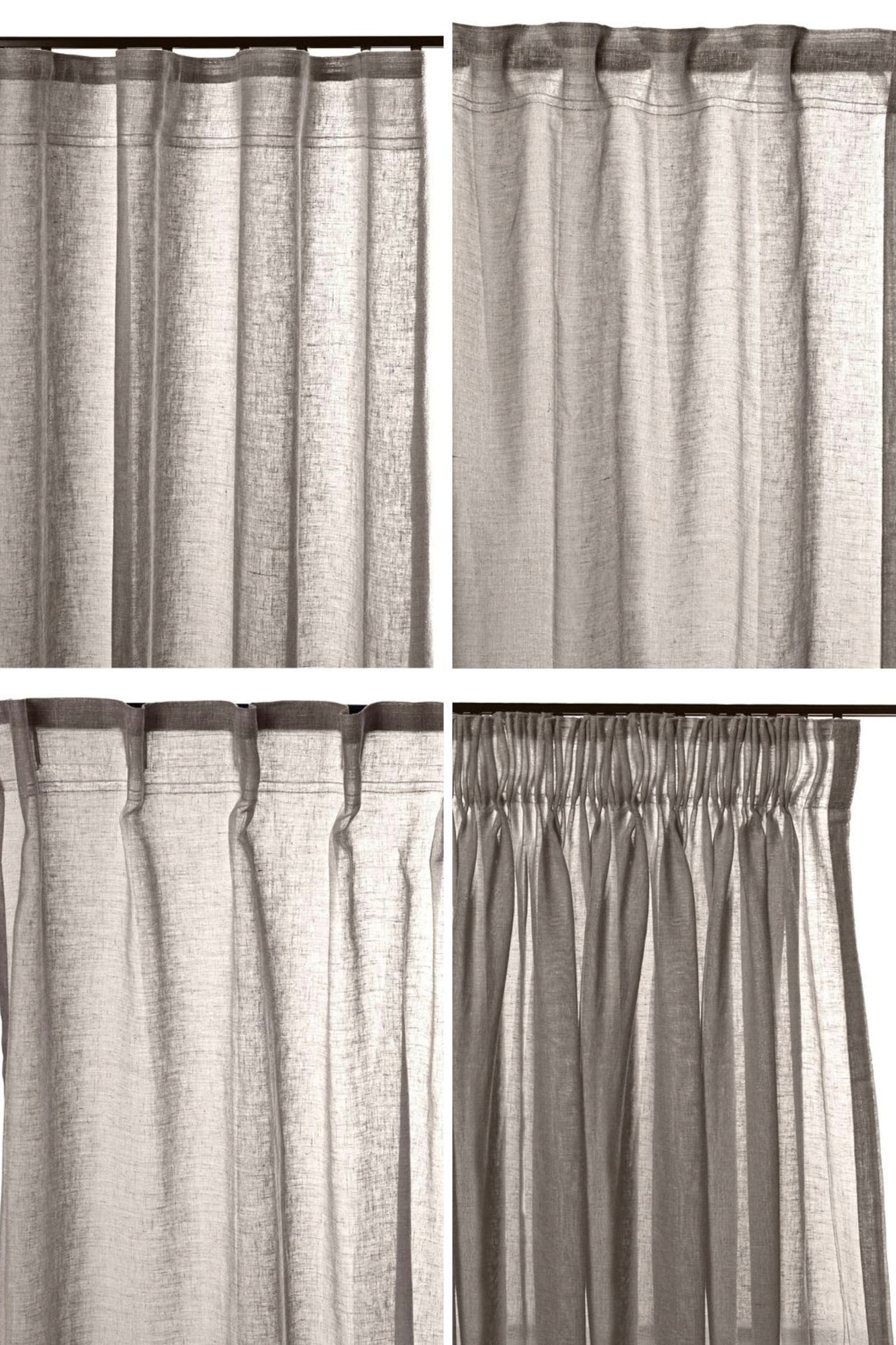Przezroczysta zasłona o strukturze lnu. Taśma systemowa z czterema różnymi opcjami zawieszania zasłon: na drążku karnisza za pomocą szelek, z haczykami palcowymi, z haczykami marszczącymi lub nowoczesną taśmą wave (falującą). Haczyki nie wchodzą w skład zestawu. Opakowanie zawiera jedną długość zasłony.