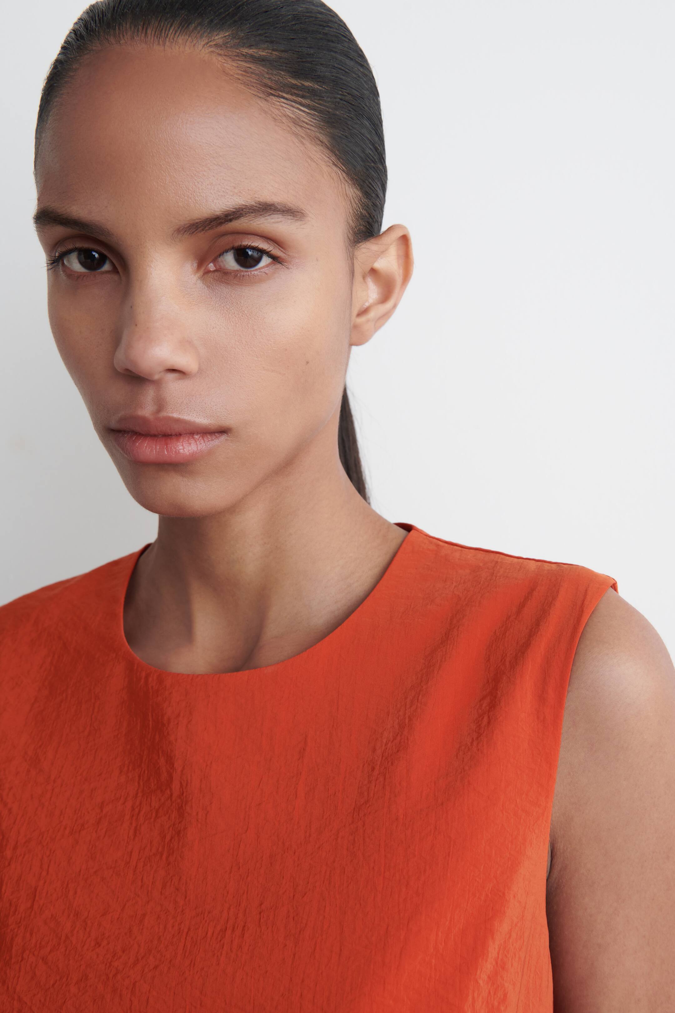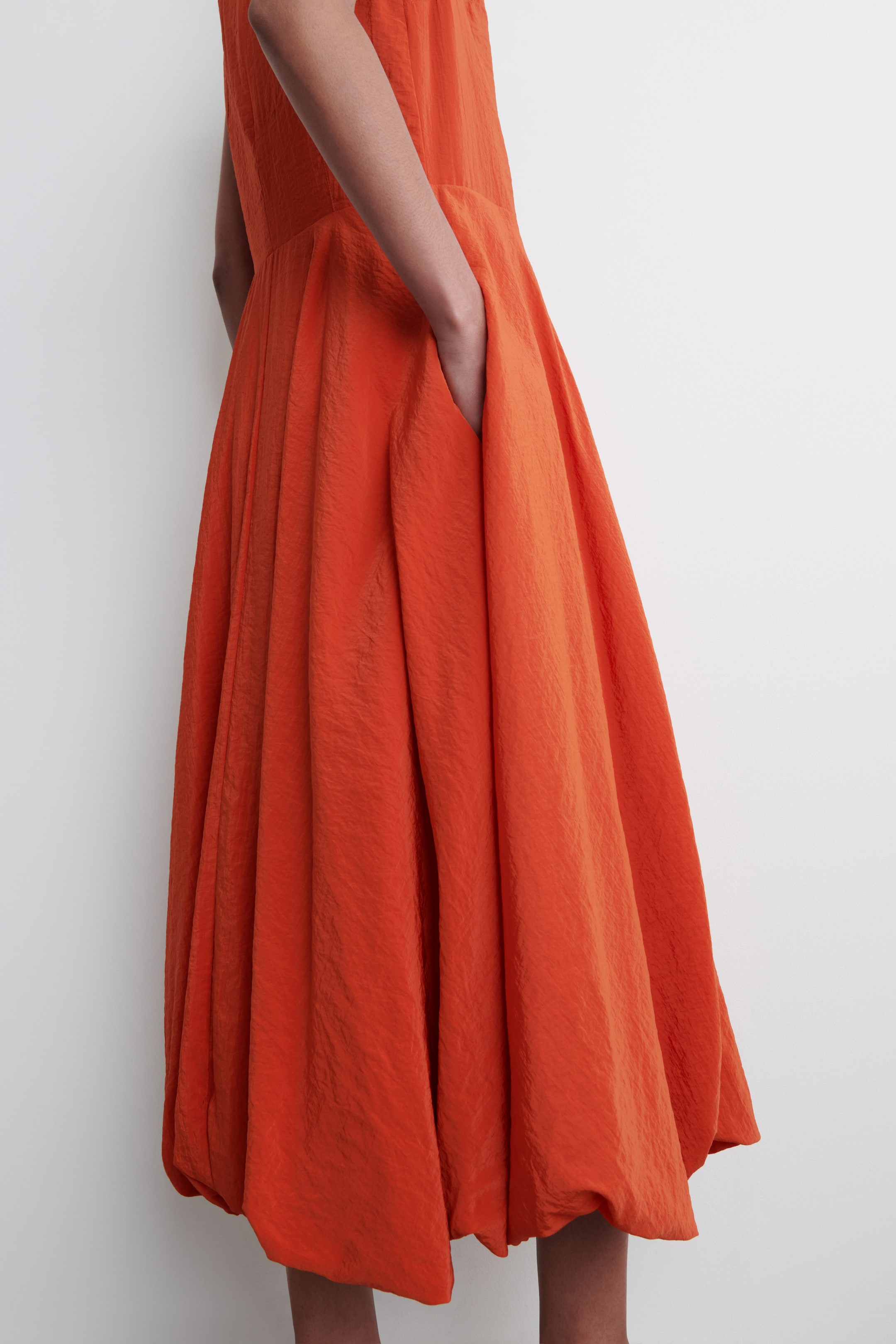 Prezentujemy pomarańczową sukienkę, której kobieco zarysowana forma wnosi powiew świeżości do garderoby. Model wykonano z lekkiej, strukturalnej tkaniny, a wyróżnia się obszerną dolną częścią o fasonie bombki. Klasyczny krój Zapięcie na zamek Poliamid z recyklingu powstaje z odpadów tekstylnych pochodzących z procesów produkcyjnych Materiał zewnętrzny (bez wykończeń): 100% poliamid z recyklingu (inna nazwa: nylon z recyklingu); podszewka: 100% bawełna; pielęgnacja: można prać w pralce. Długość produktu w rozmiarze 36 (mierząc od tyłu) to 119,5 cm; modelka prezentuje produkt w rozmiarze 36.