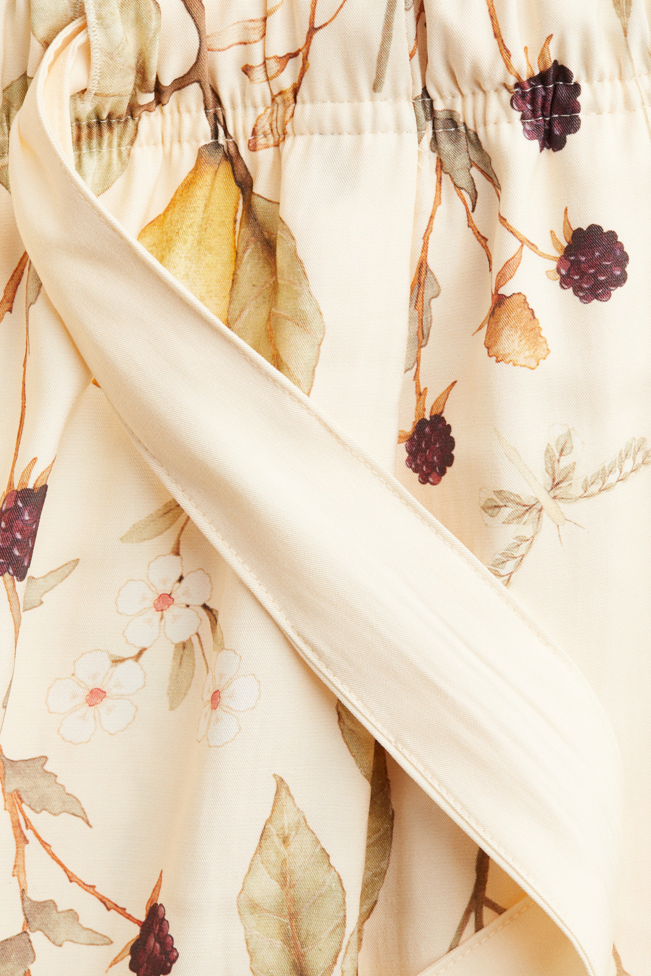 Spodnie z diagonalu z mieszanki zawierającej modal. Wysoki stan, elastyczna talia ściągana szerokim paskiem. Dyskretne kieszenie po bokach, z tyłu jedna atrapa kieszeni z wypustką. Szerokie nogawki.
