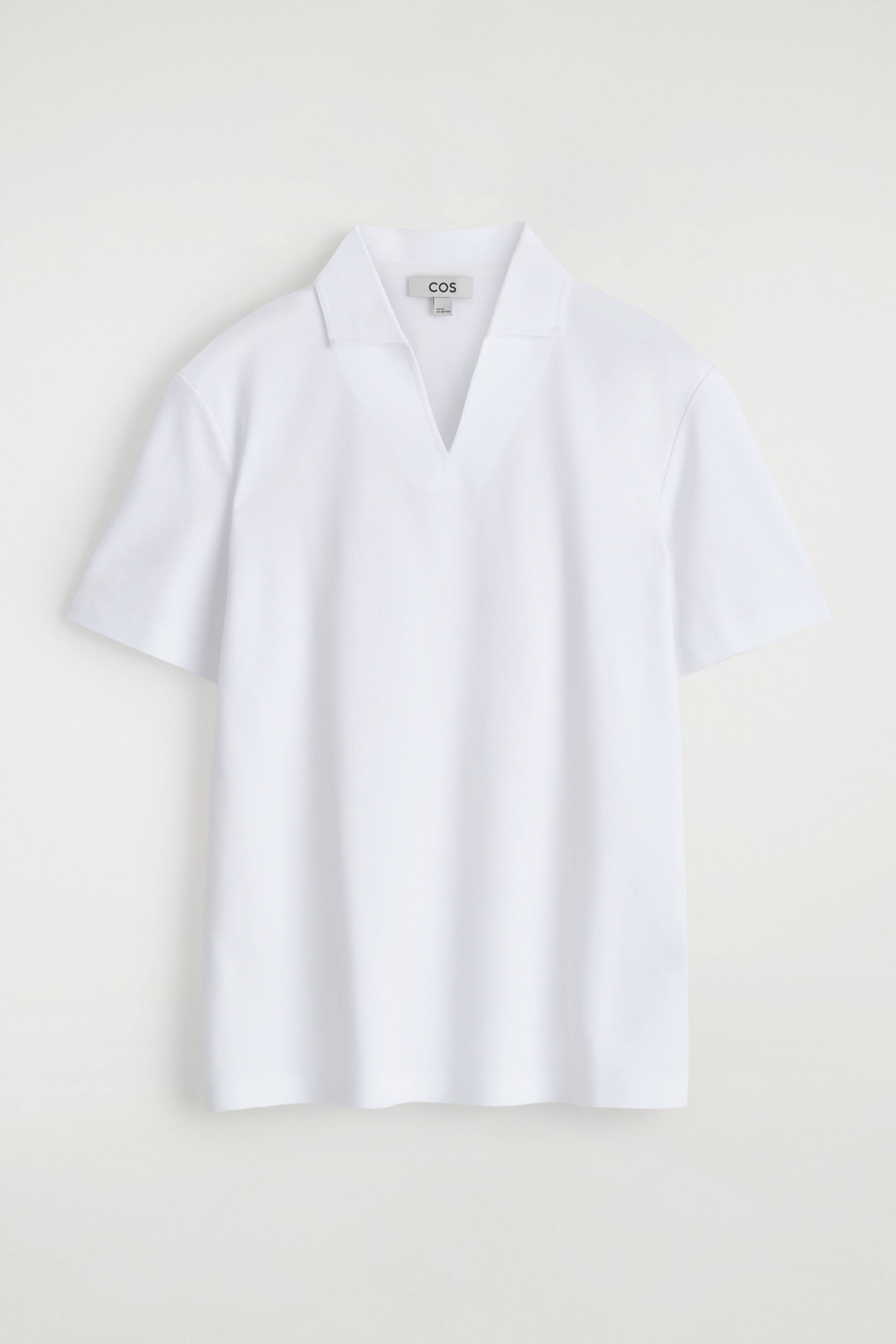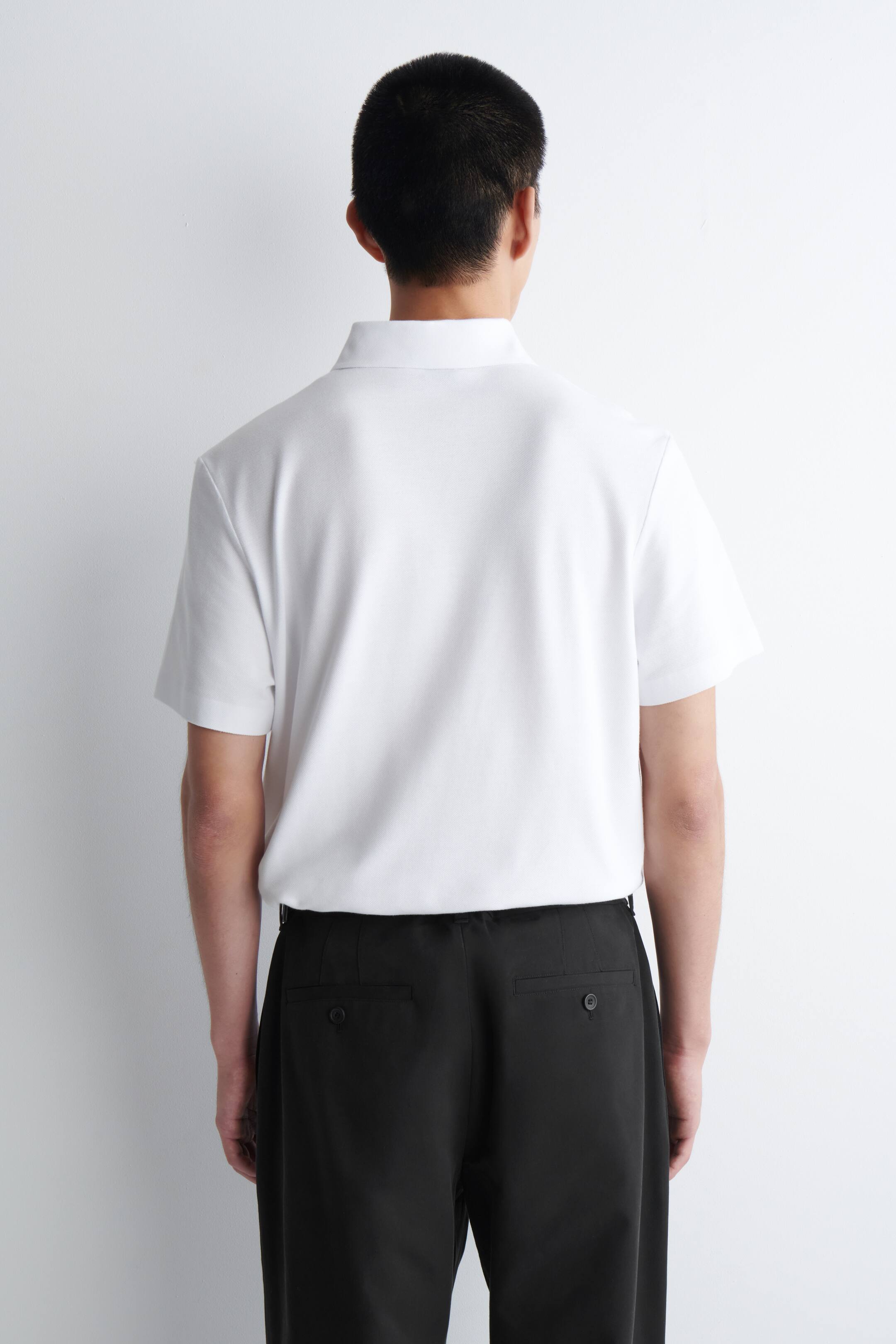 Prezentujemy śnieżnobiałą koszulkę polo, która emanuje swobodą. Luźny model wykonano z oddychającej piki bawełnianej wyróżniającej się gładką powierzchnią. Design uwzględnia otwarty kołnierzyk i zgrzewane szwy. Relaxed fit Skład (bez wykończeń): 100% bawełna; pielęgnacja: można prać w pralce. Długość produktu w rozmiarze M (mierząc od tyłu) to 67 cm; model prezentuje produkt w rozmiarze M.