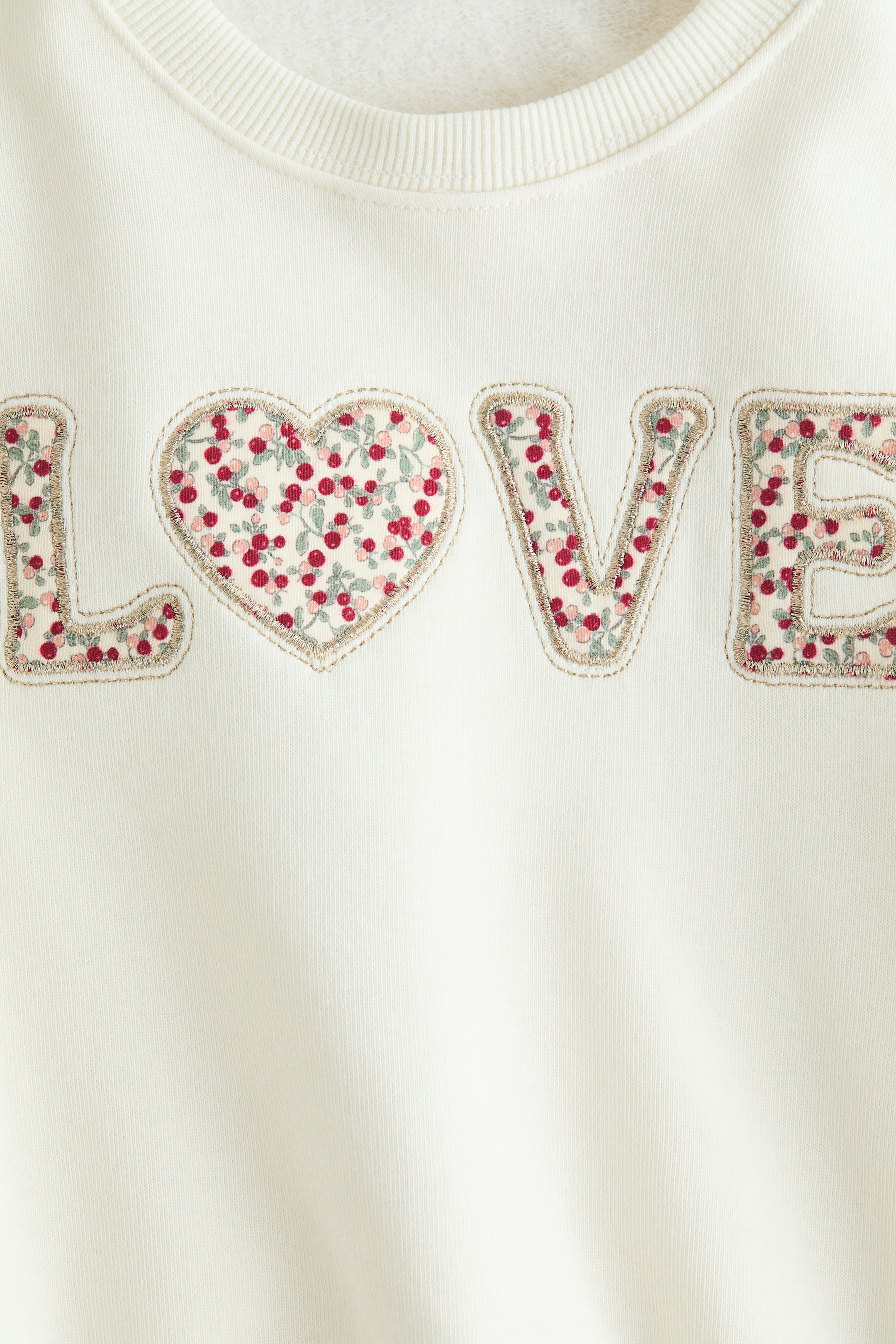 Bluza z dzianiny dresowej z miękkim meszkiem wewnątrz. Okrągły dekolt, ściągacz wokół szyi, rękawów i u dołu.