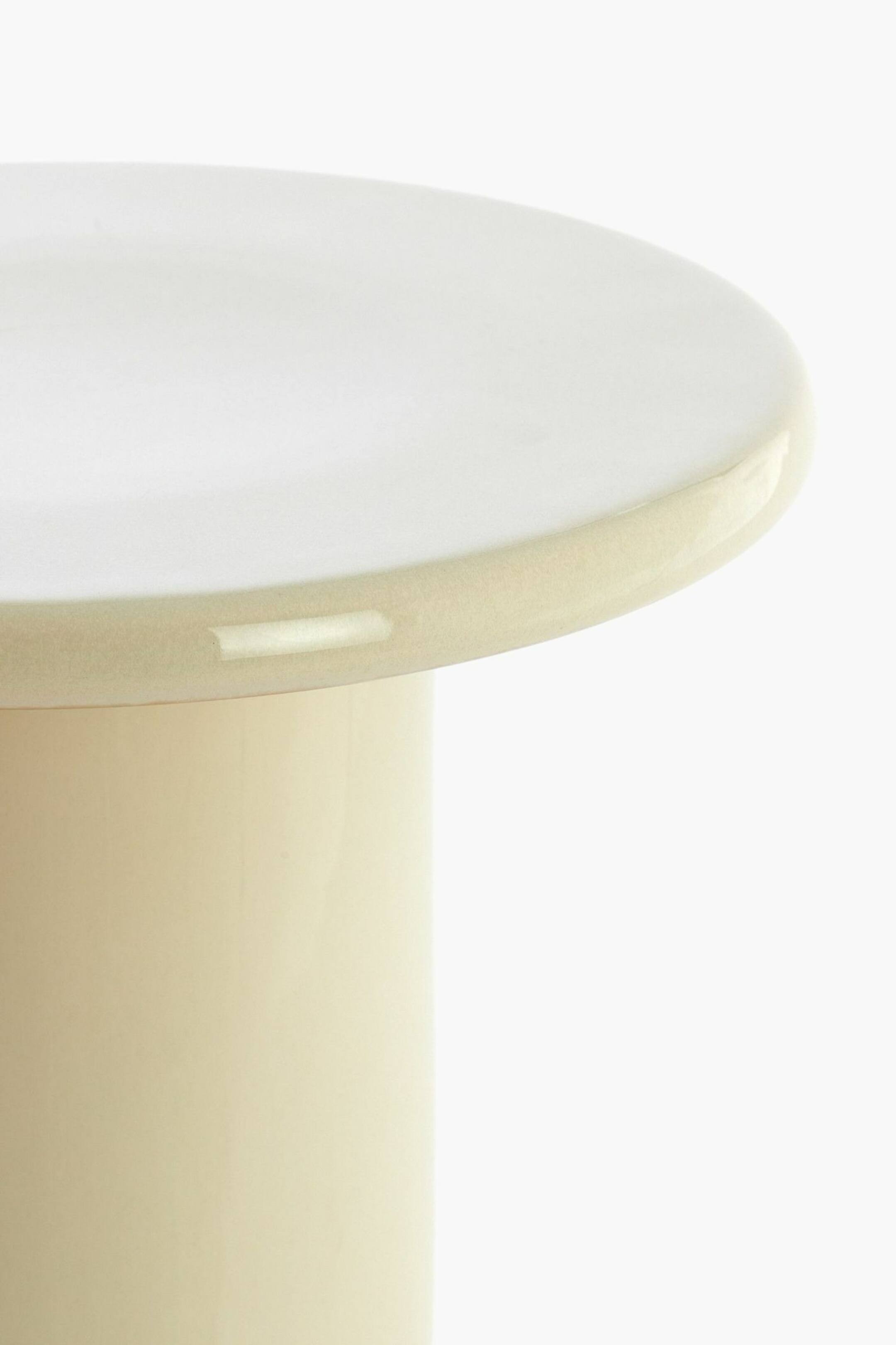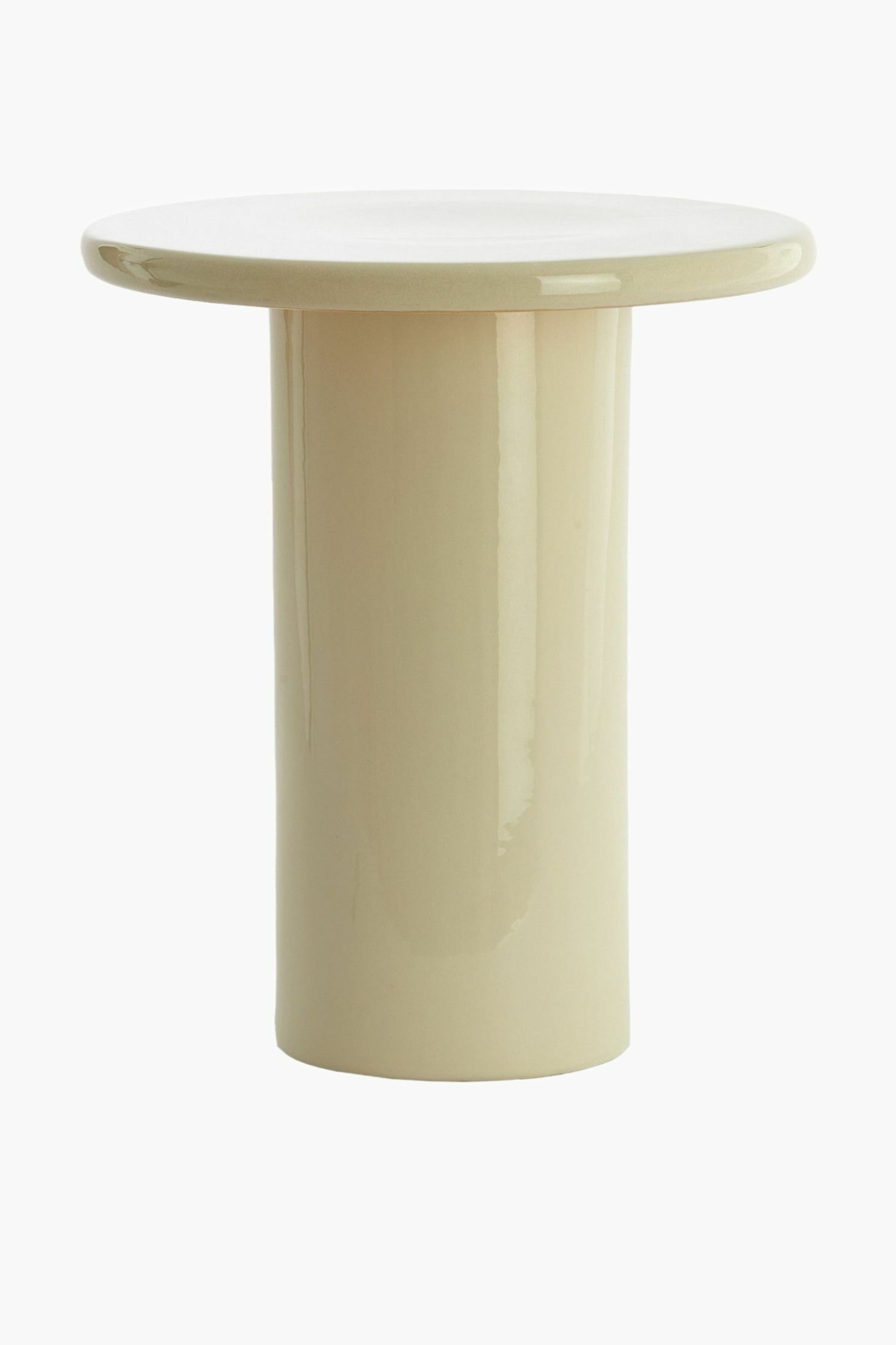 Ten efektowny stolik boczny Tudo w kolorze kremowym to specjalista od wszystkiego. Ozdobny w rogu z piękną rośliną lub funkcjonalny jako stolik boczny obok sofy, na filiżankę kawy. Stół można łatwo przenosić i można go ustawić w dowolnym miejscu. W salonie, sypialni czy jadalni ten niewielki stolik wyróżnia się i przyciąga uwagę. Cylindryczna podstawa z ceramiki w tym samym kolorze co okrągły blat nadaje temu stołowi zabawny akcent. Wymiary: 40.5 x 40.5 x 45.5