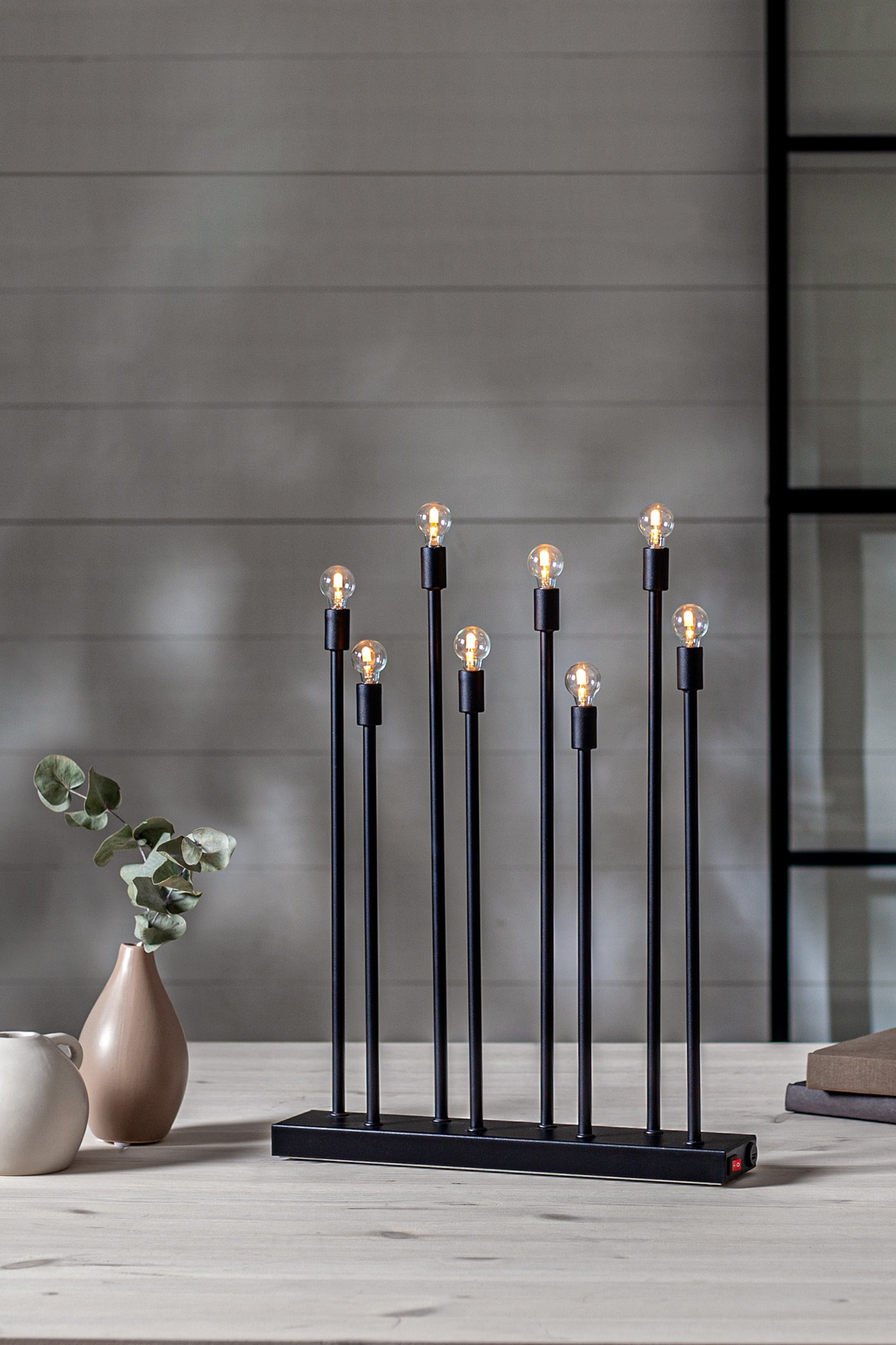 Nowoczesny świecznik adwentowy z możliwością ładowania, wykonany z metalu. Świecznik posiada okrągłe lampki LED, które zapewniają nastrojowe światło. Do ładowania za pomocą dołączonego kabla USB. Wysokość: 40 cm. Szerokość 29 cm. Świecznik posiada funkcję timera.