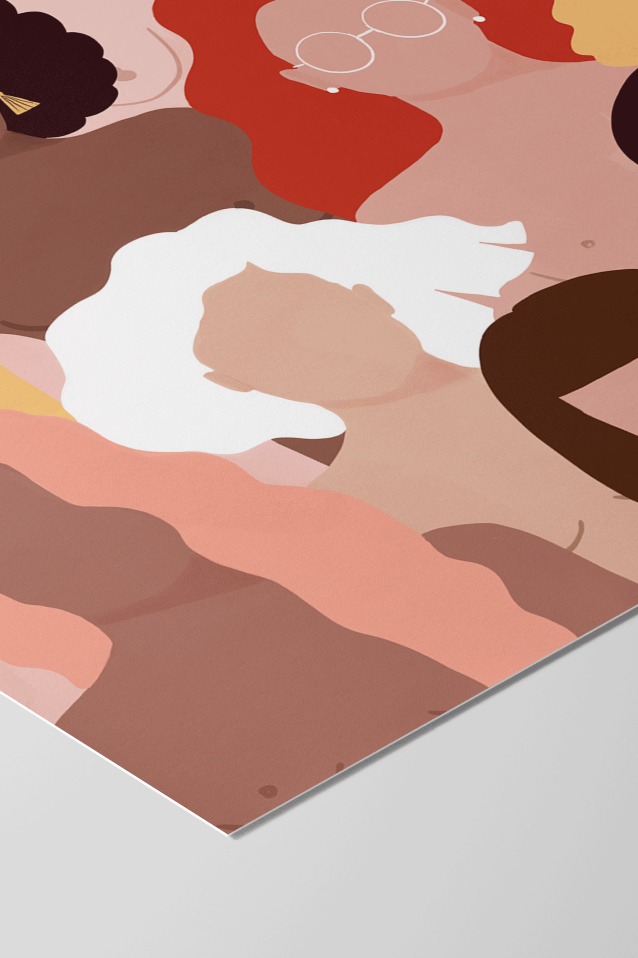 Este cartaz é um retrato poderoso que celebra os ideais feministas. O cartaz apresenta mulheres de diferentes raças e parece de pé forte, sem camisa e sem remorso. O cartaz é uma declaração ousada do poder e da resiliência das mulheres. Os tons de azul, rosa, vermelho, amarelo e branco adicionam profundidade e vibração à imagem, tornando-a um complemento perfeito para qualquer coleção que celebre o corpo feminino e a força das mulheres.