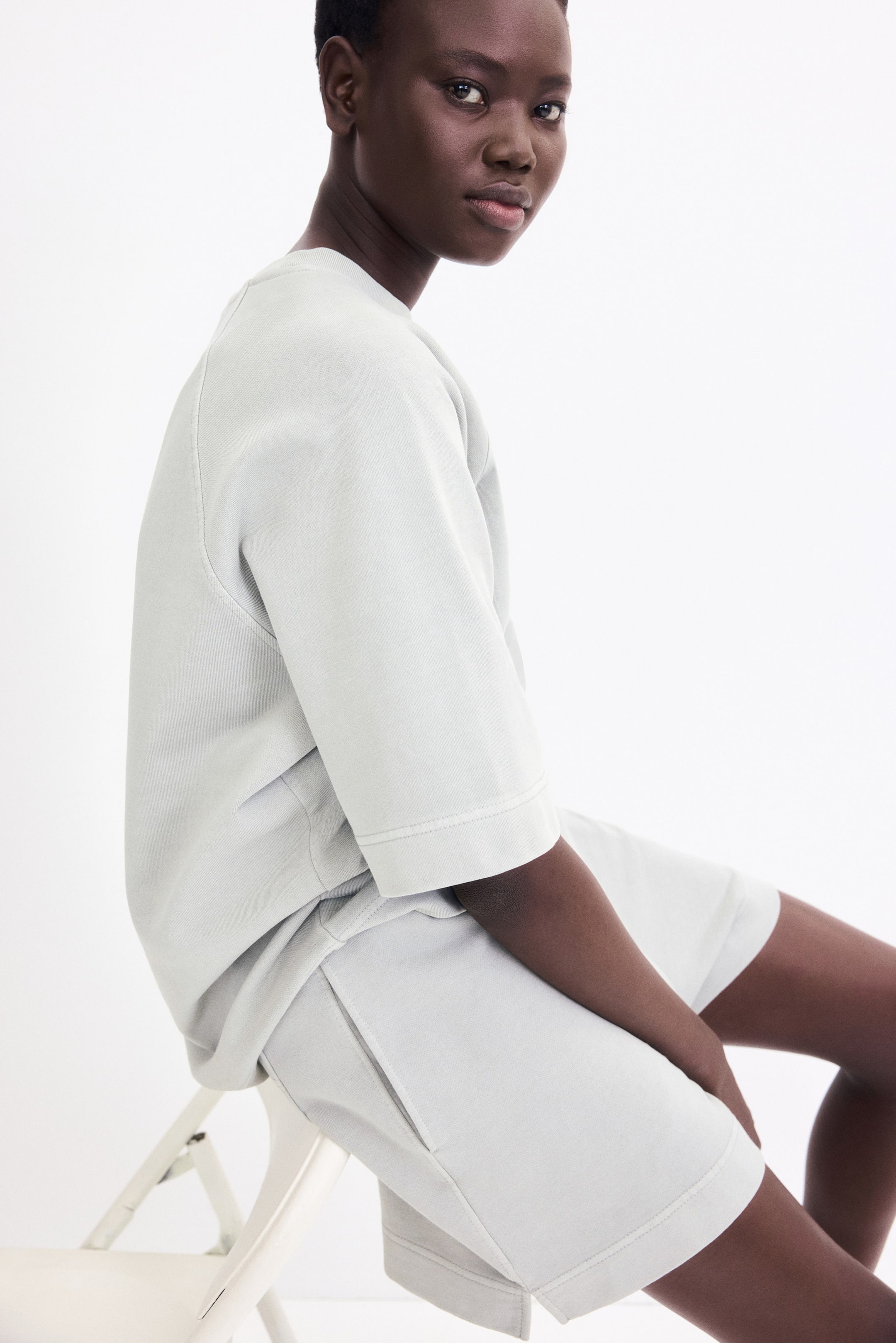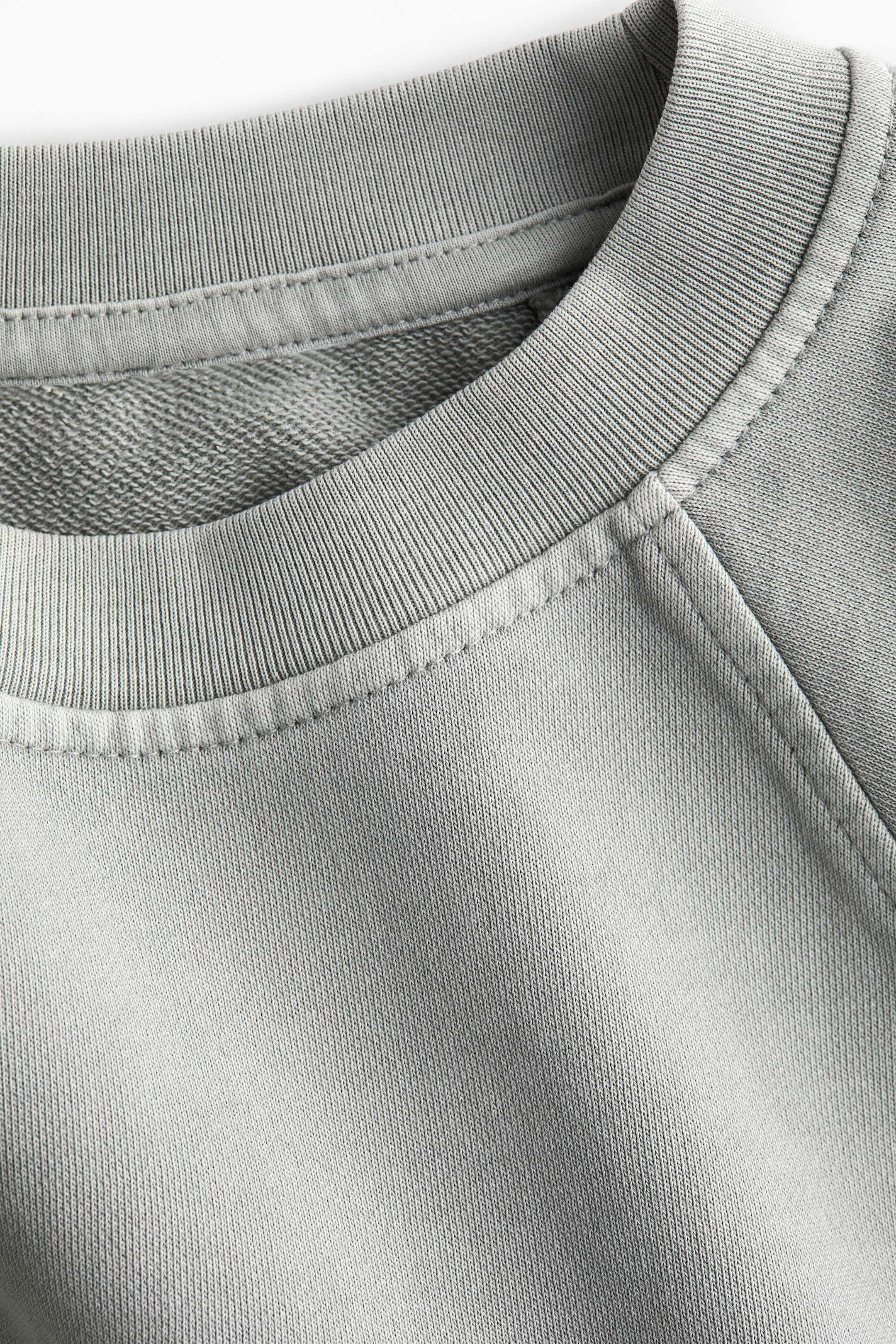 Sweatshirt em tecido moletão leve de algodão com decote redondo canelado e mangas raglan pelo cotovelo.