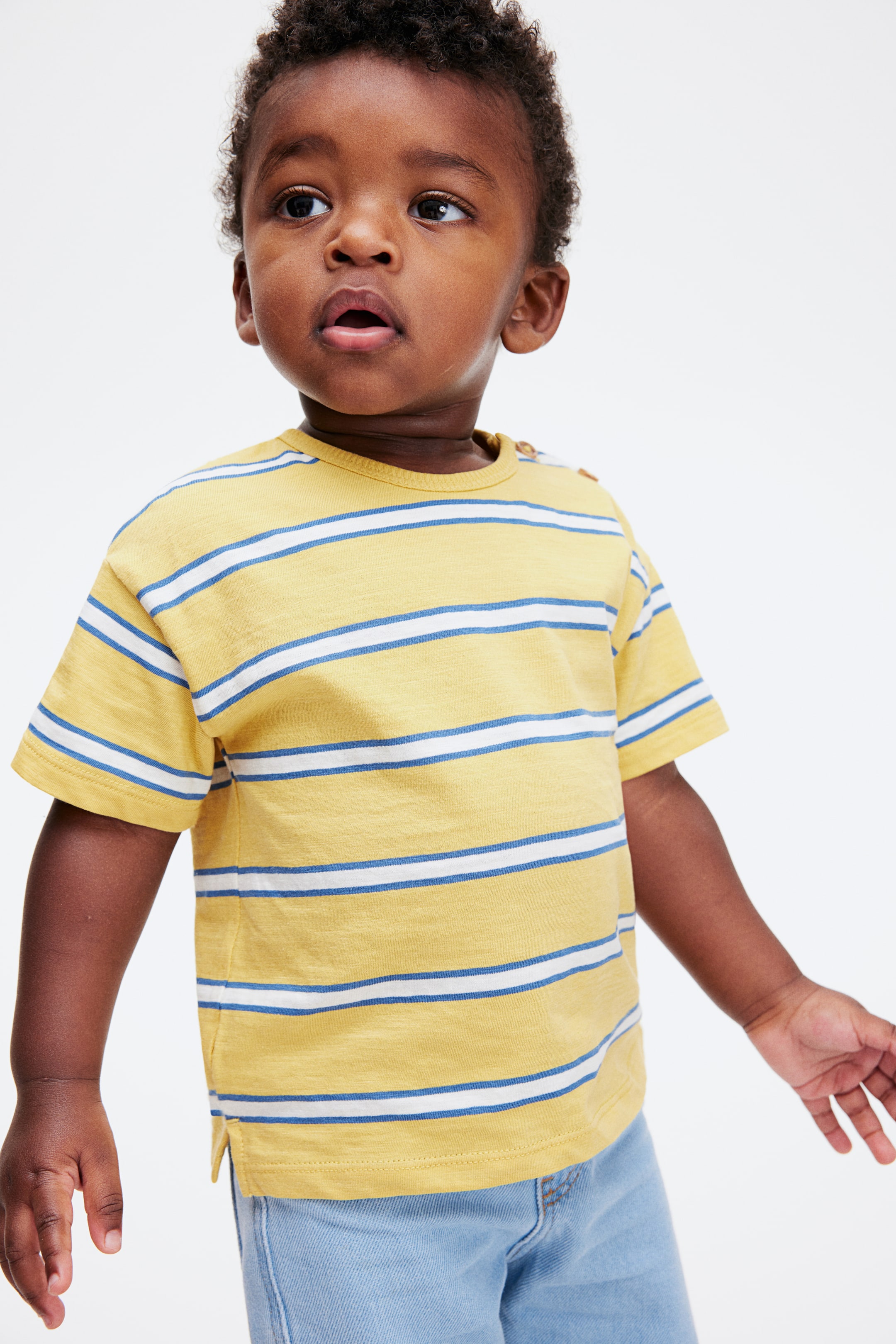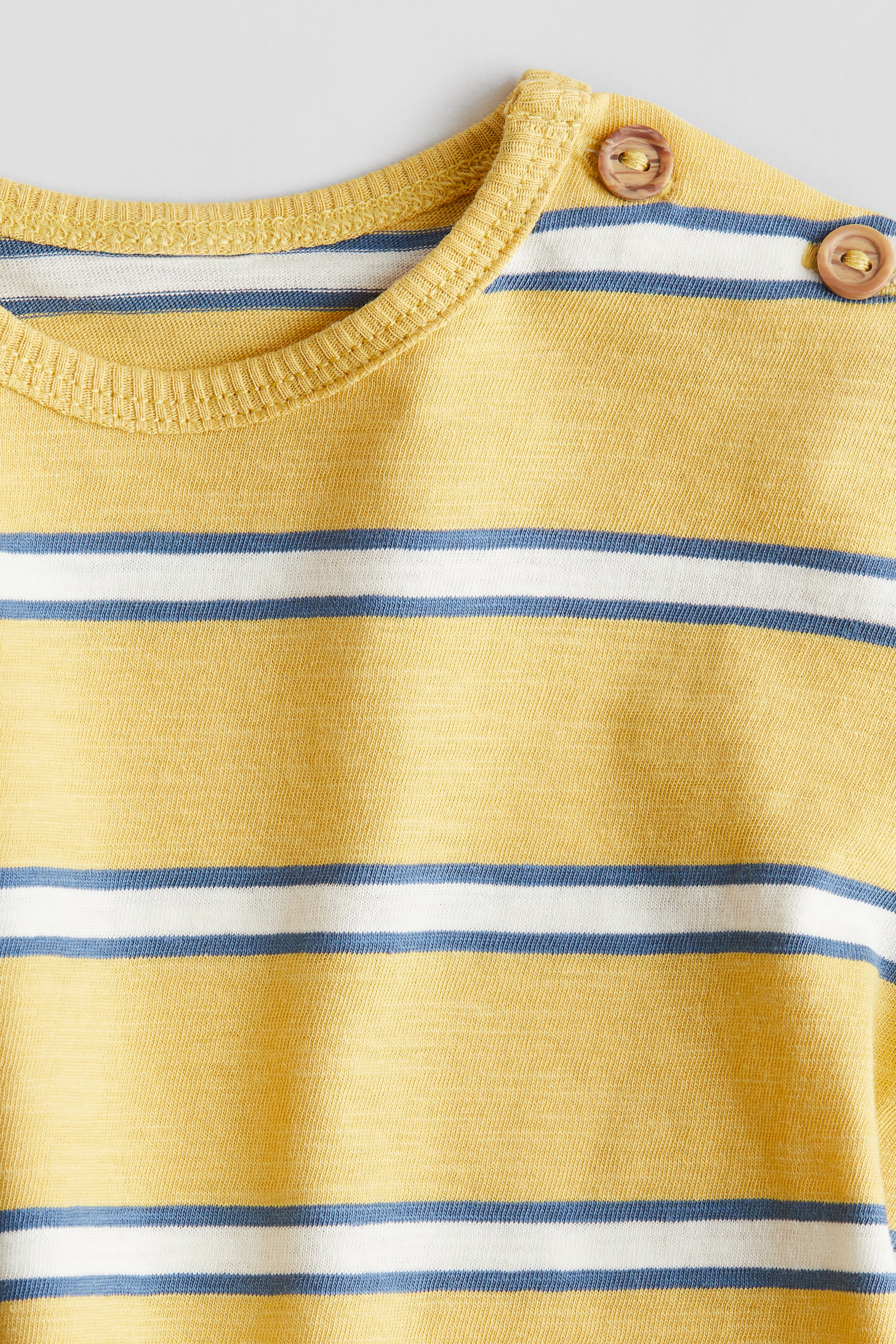 T-shirt em jersey de algodão macio com decote redondo com botões num dos lados (exceto nos tamanhos 98-104).