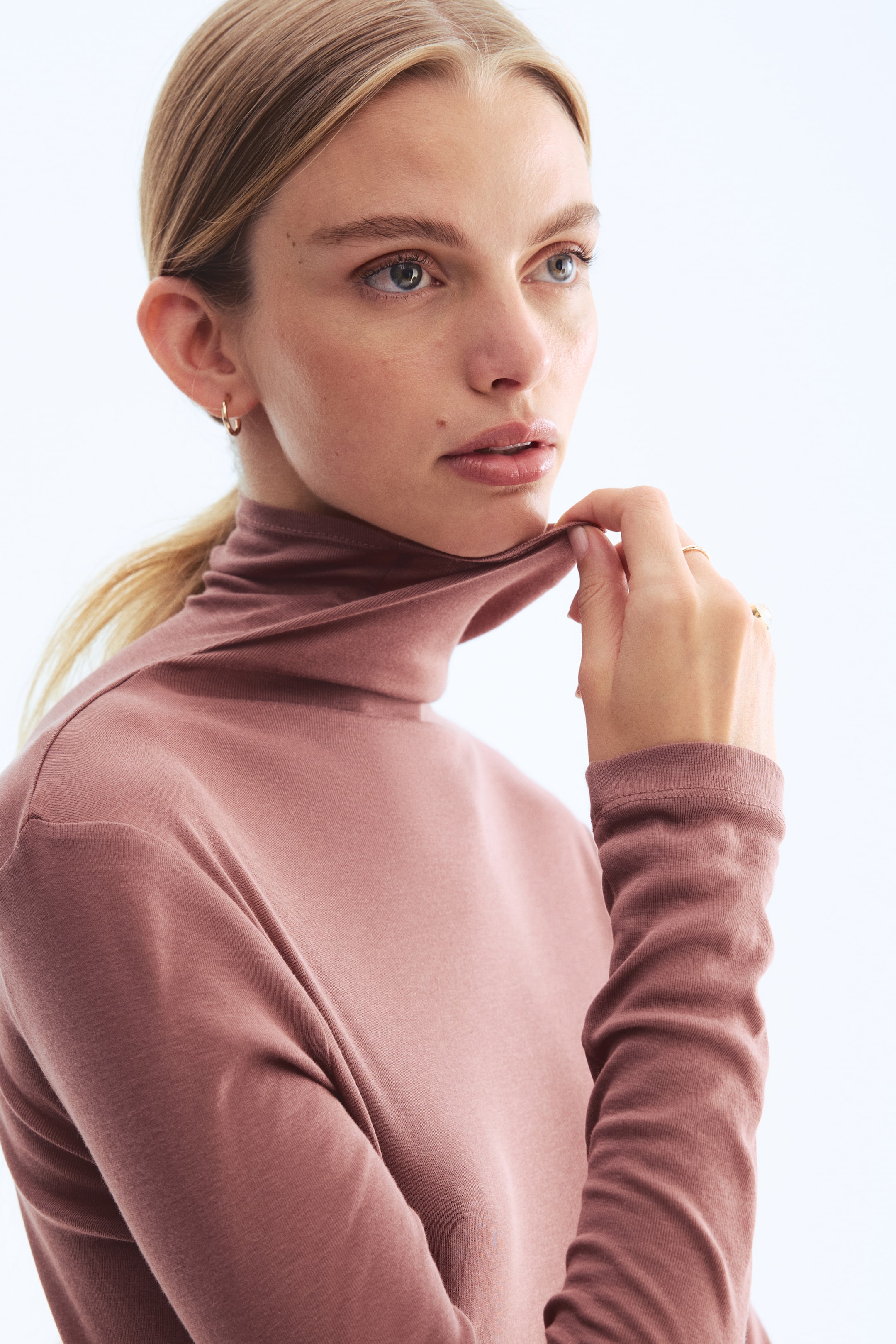 Camisola em jersey macio de algodão pima com meia gola e mangas extralongas.
